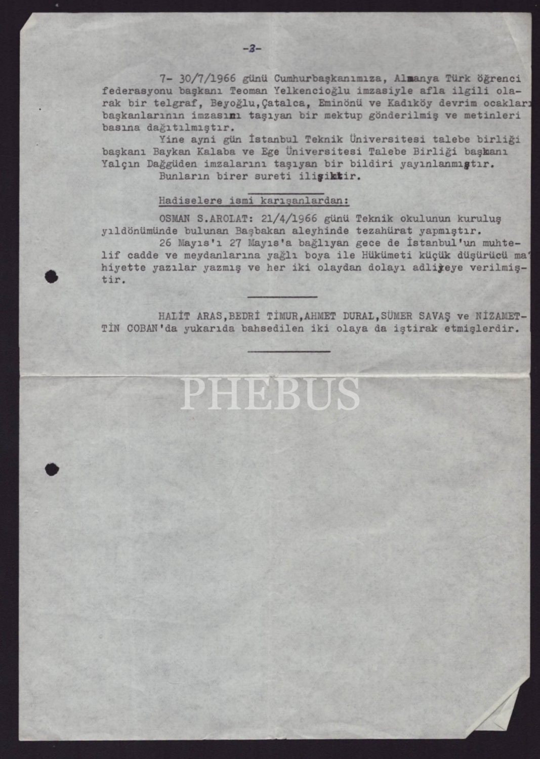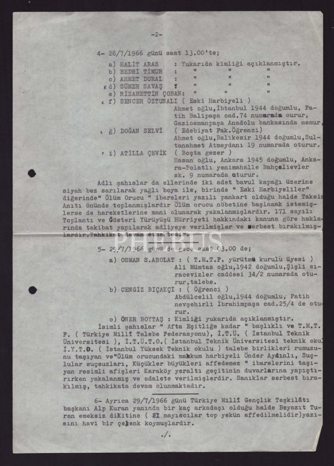 Raporda, 20 Mayıs 1963 Ayaklanması´nın bastırılmasından sonra okulla ilişiği kesilen harp okulu öğrencilerinin ve çeşitli okulların öğrenci birliklerinin hükümete yönelik protestoları yer almaktadır.