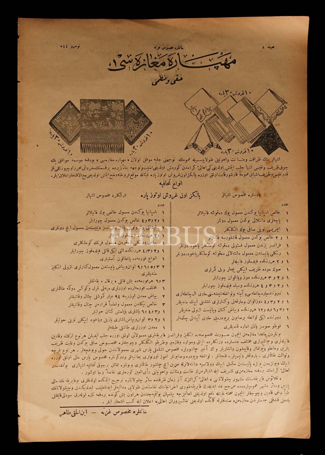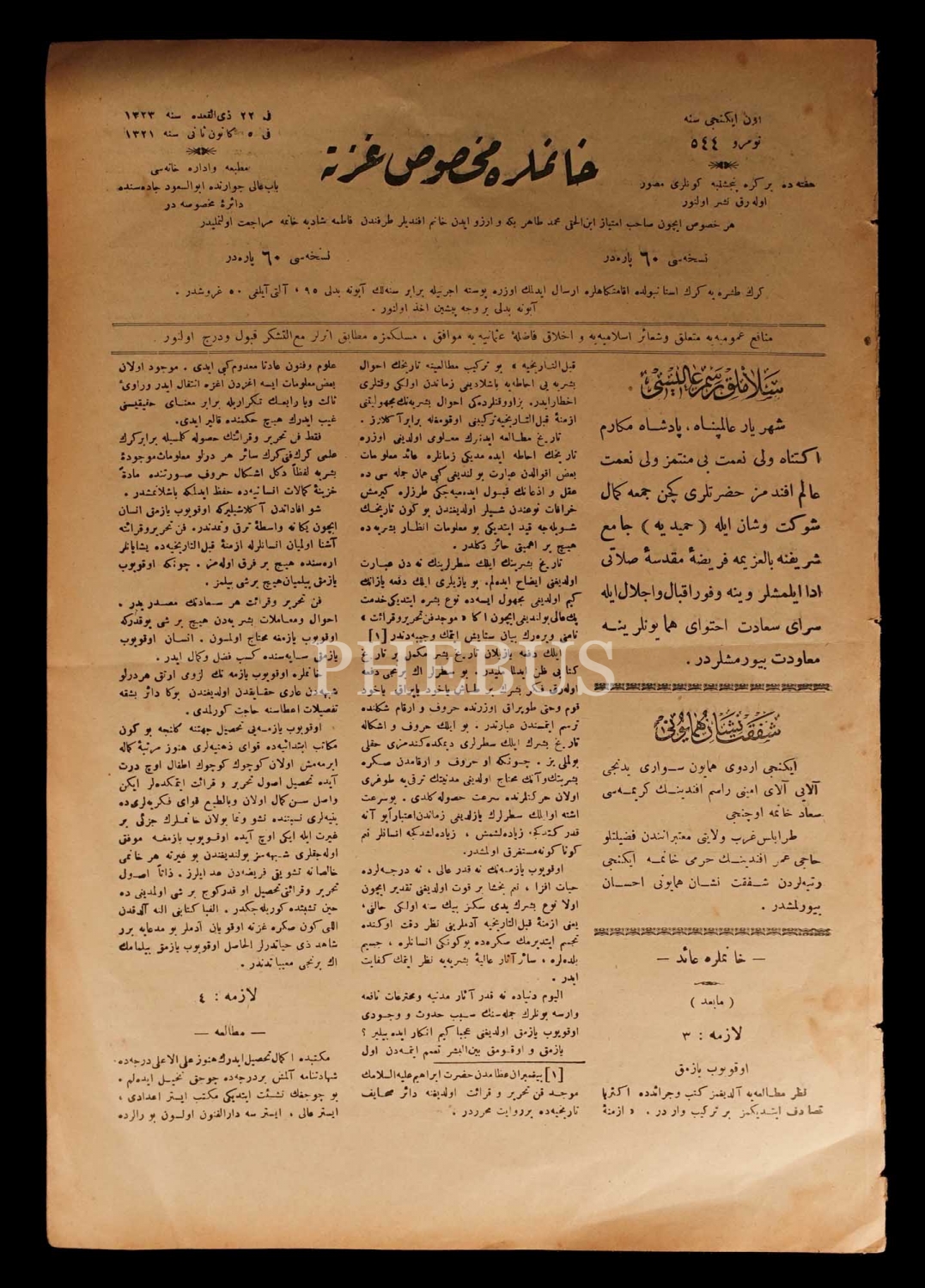 HANIMLARA MAHSUS GAZETE´nin 5 Kanunisani 1321 tarihli nüshası, 24x36 cm...