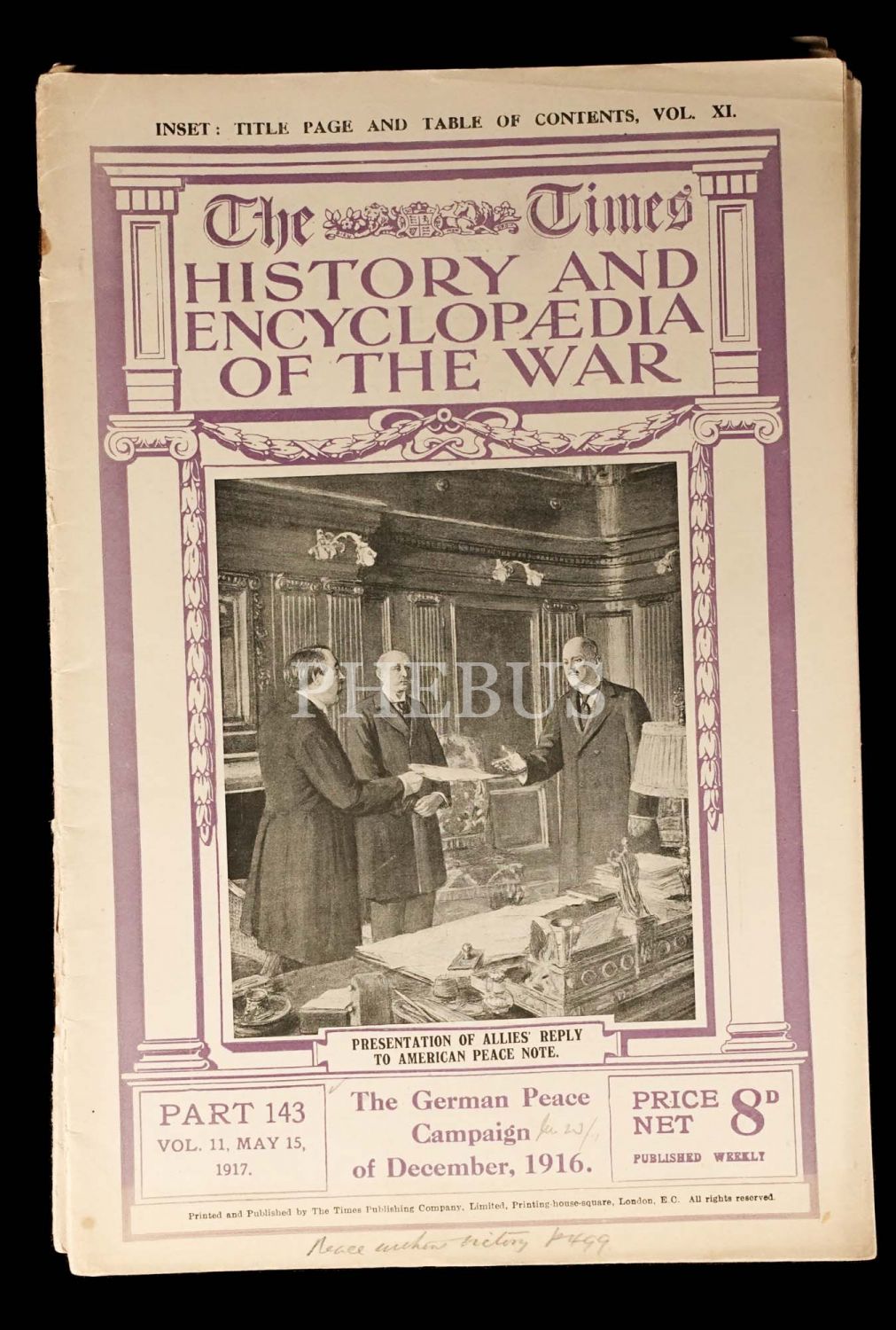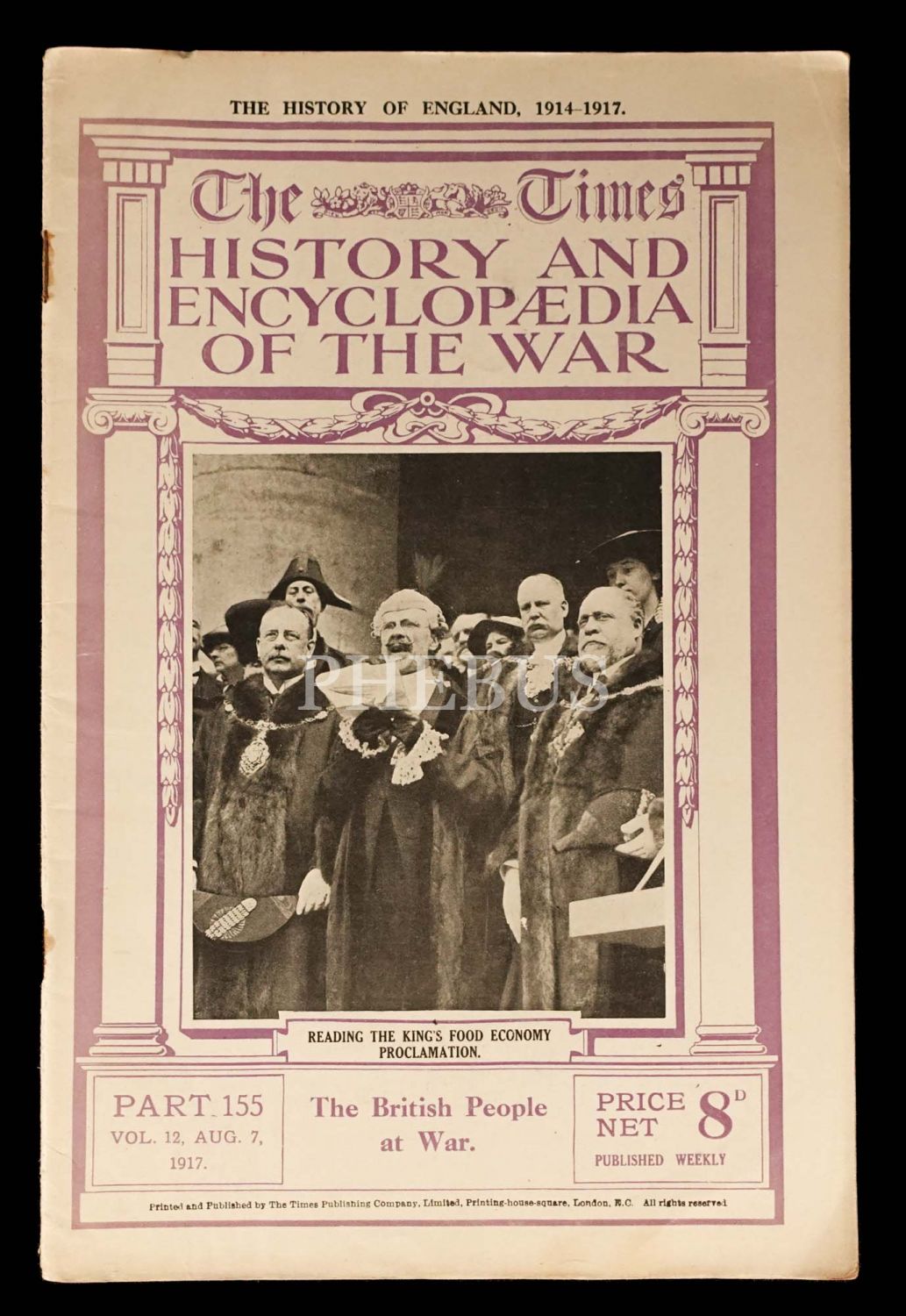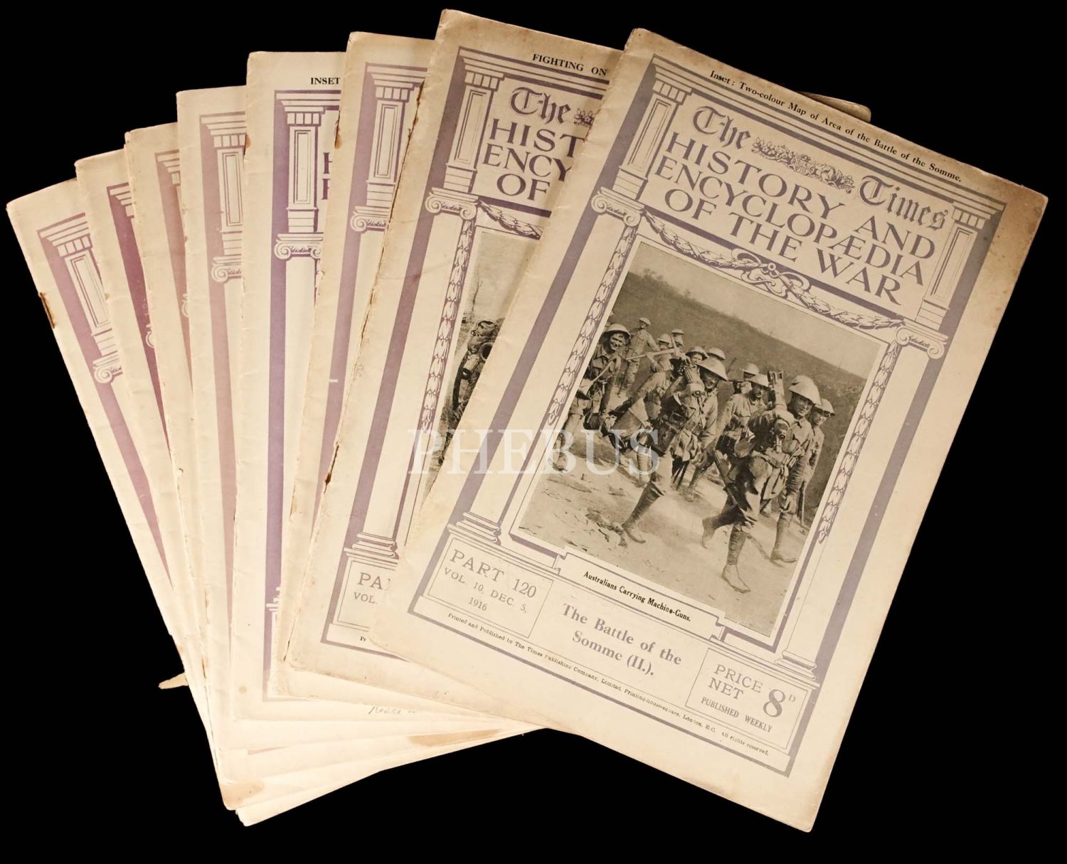The Times dergisinin yayımladığı Birinci Dünya Savaşı tarihi fasikülleri, "The Times History and Encyclopedia of the War, 8 adet, 20x30 cm...
