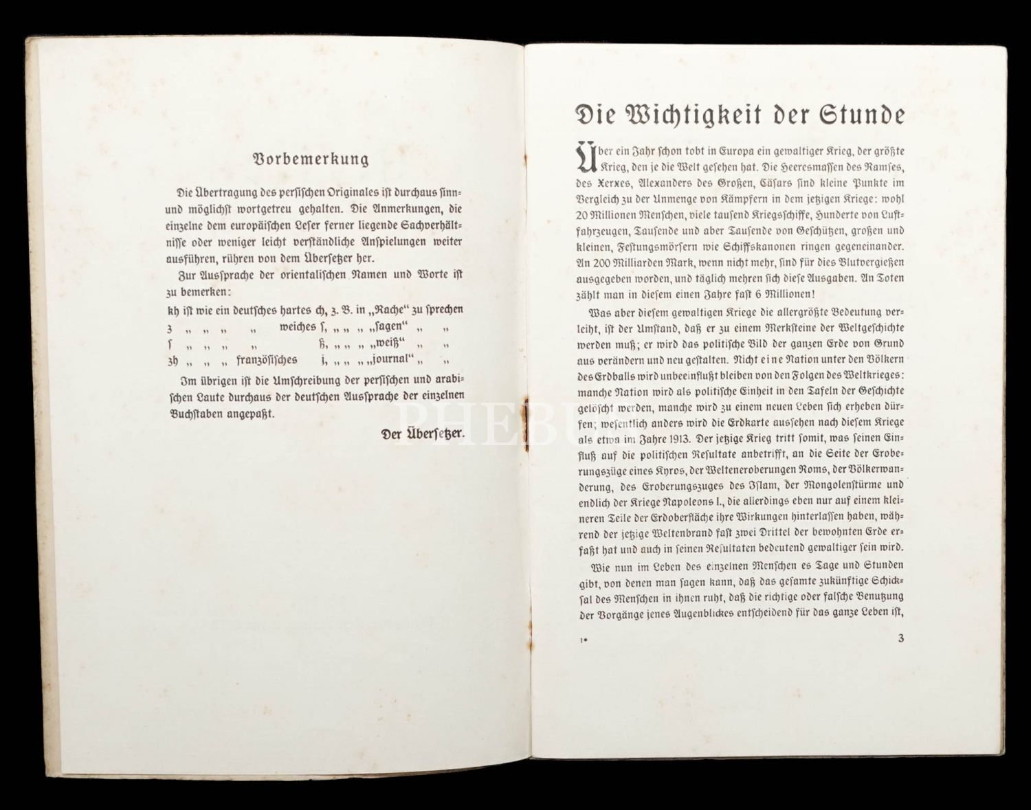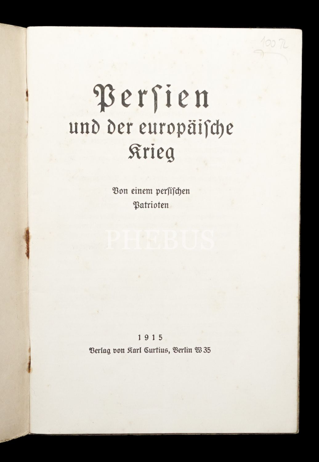 PERSIEN UND DER EUROPAISCHE KRIEG, 1915, Verlag von Karl Curtius, Berlin, 48 sayfa, 16x24 cm...