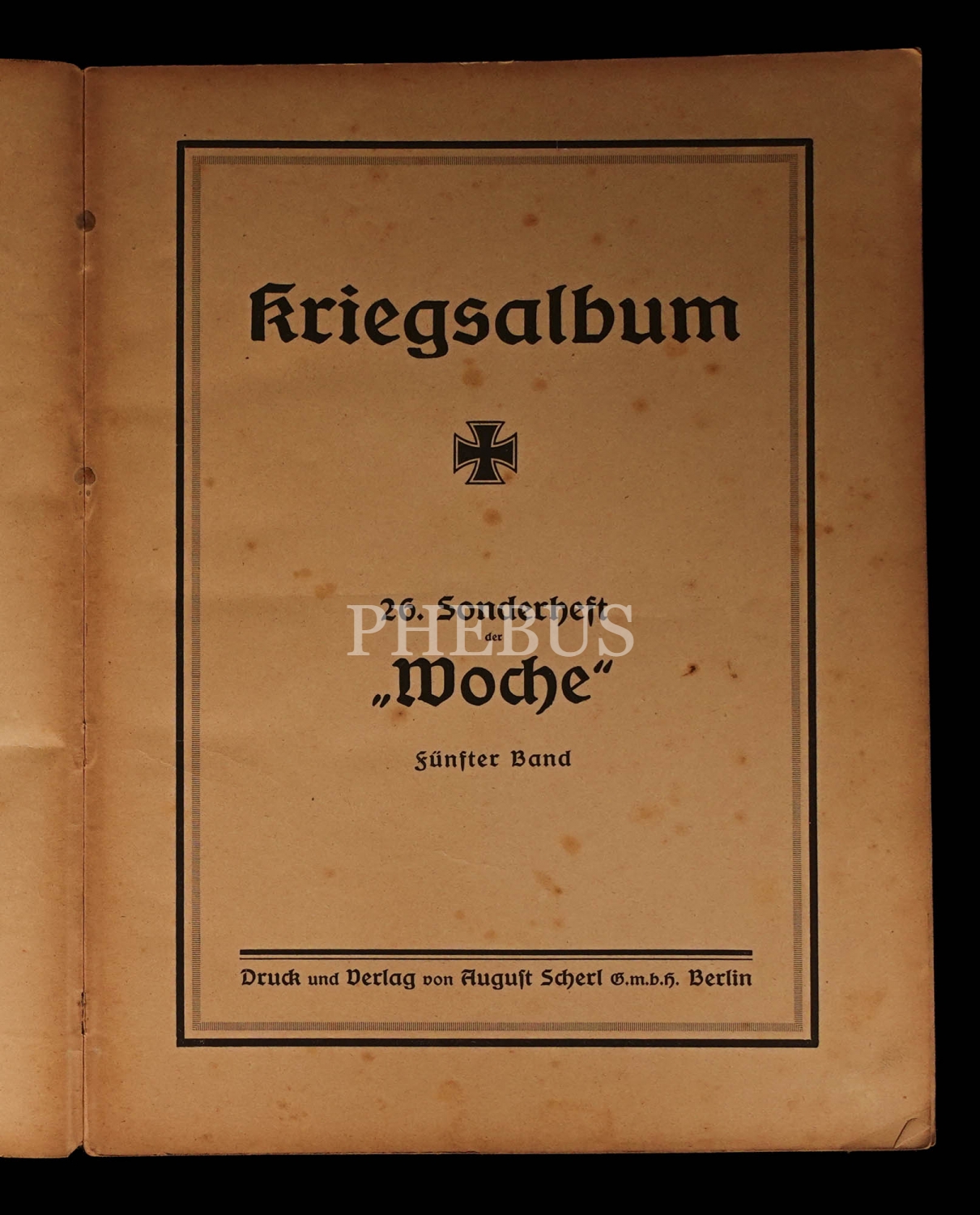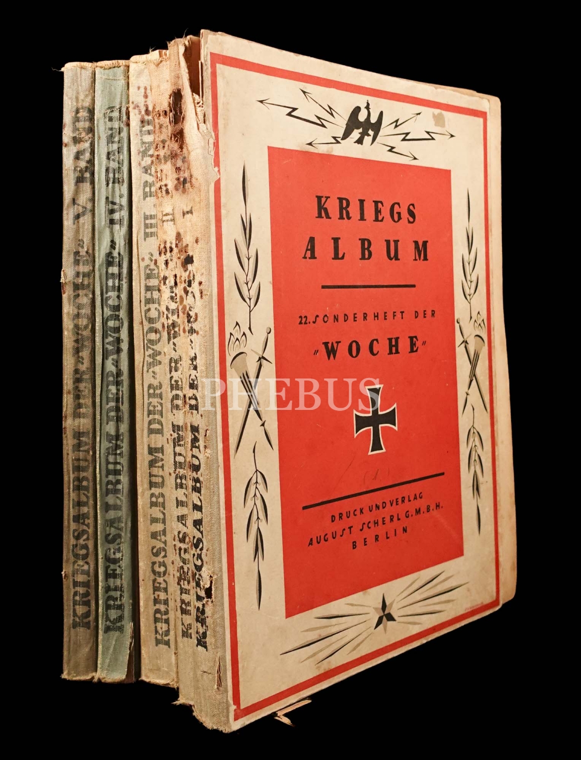 KRIEGS ALBUM (5 Cilt), Druck und Verlag August Scherl G.M.B.H., Berlin, 183+167+151+150+112 sayfa, 24x31 cm...