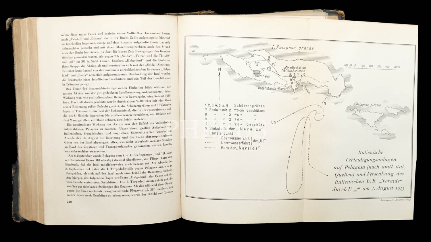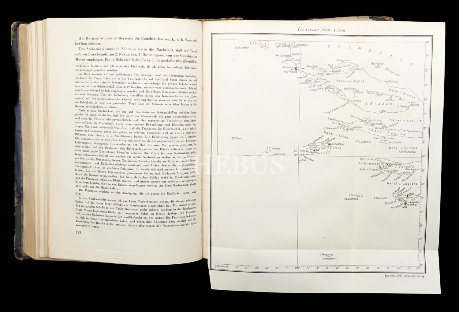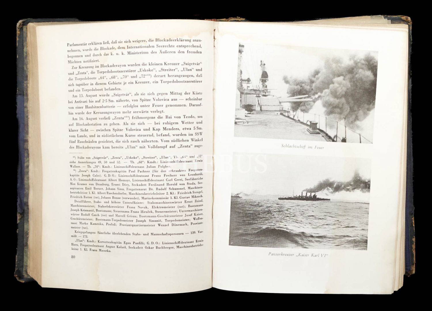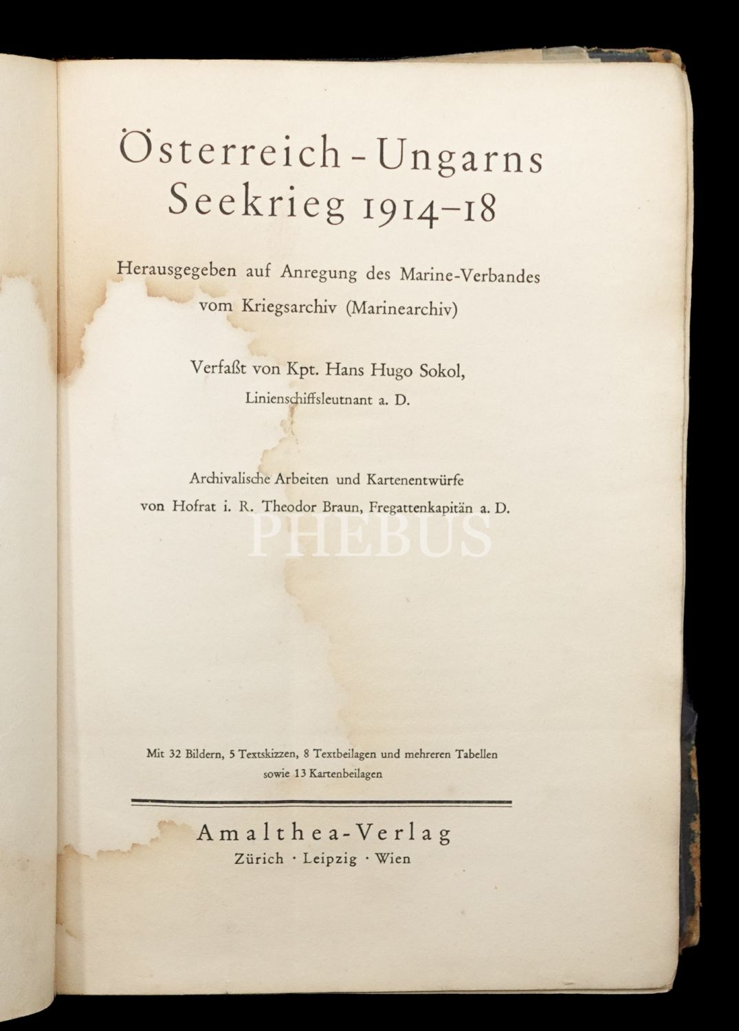 Avusturya-Macaristan İmparatorluğu´nun Birinci Dünya Savaşı´ndaki deniz savaşlarını mercek altına alan kapsamlı bir çalışma... Kitabın arka iç kapağında yer alan cepte 6 adet katlanır harita ve kroki eki mevcuttur. Cildi yorgun, ilk sayfaları su görmüş haliyle.