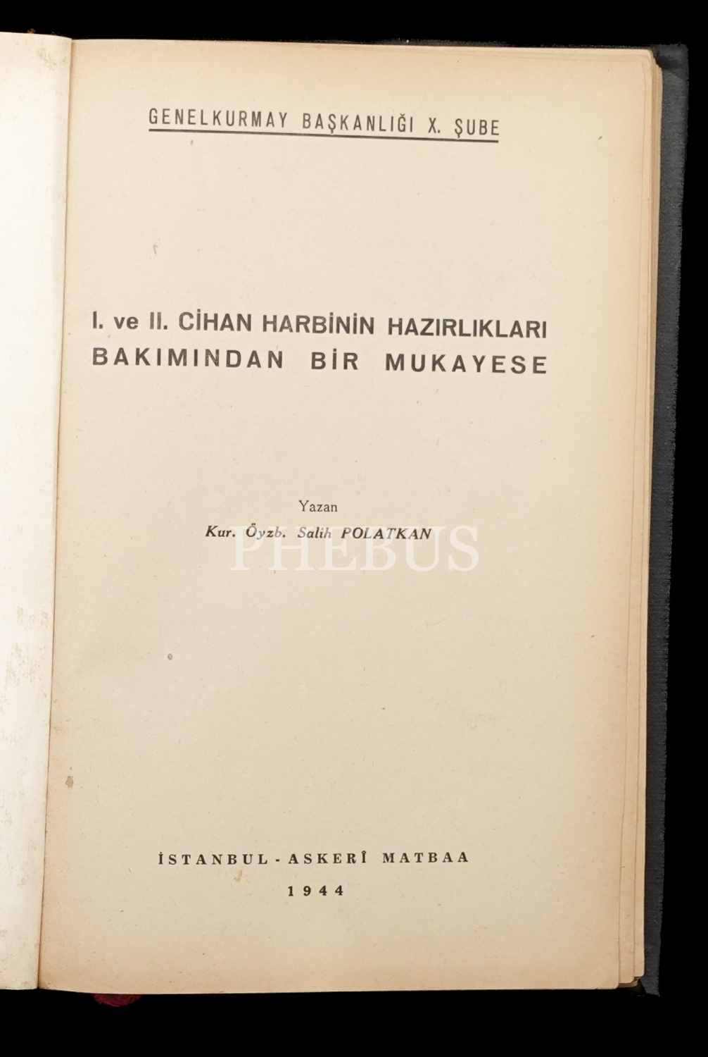 I. VE II. CİHAN HARBİNİN HAZIRLIKLARI BAKIMINDAN BİR MUKAYESE, Salih Polatkan, 1944, Askeri Matbaa, 132 sayfa, 17x25 cm...
