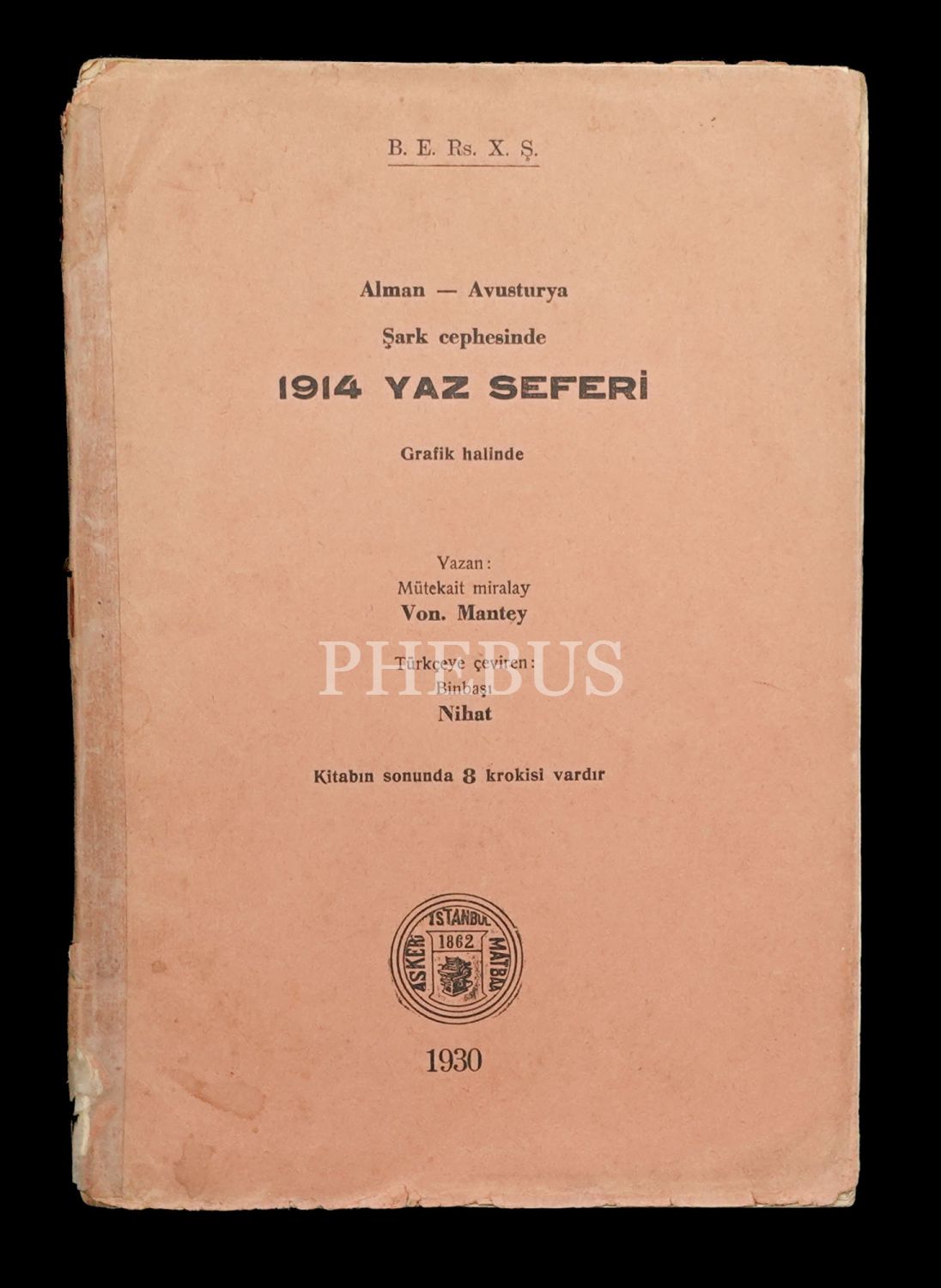 ALMAN-AVUSTURYA ŞARK CEPHESİNDE 1914 YAZ SEFERİ, yazan: Metekait Miralay Von. Mantey, çeviren: Binbaşı Nihat, 1930, Askeri Matbaa, 52 sayfa, 17x24 cm...