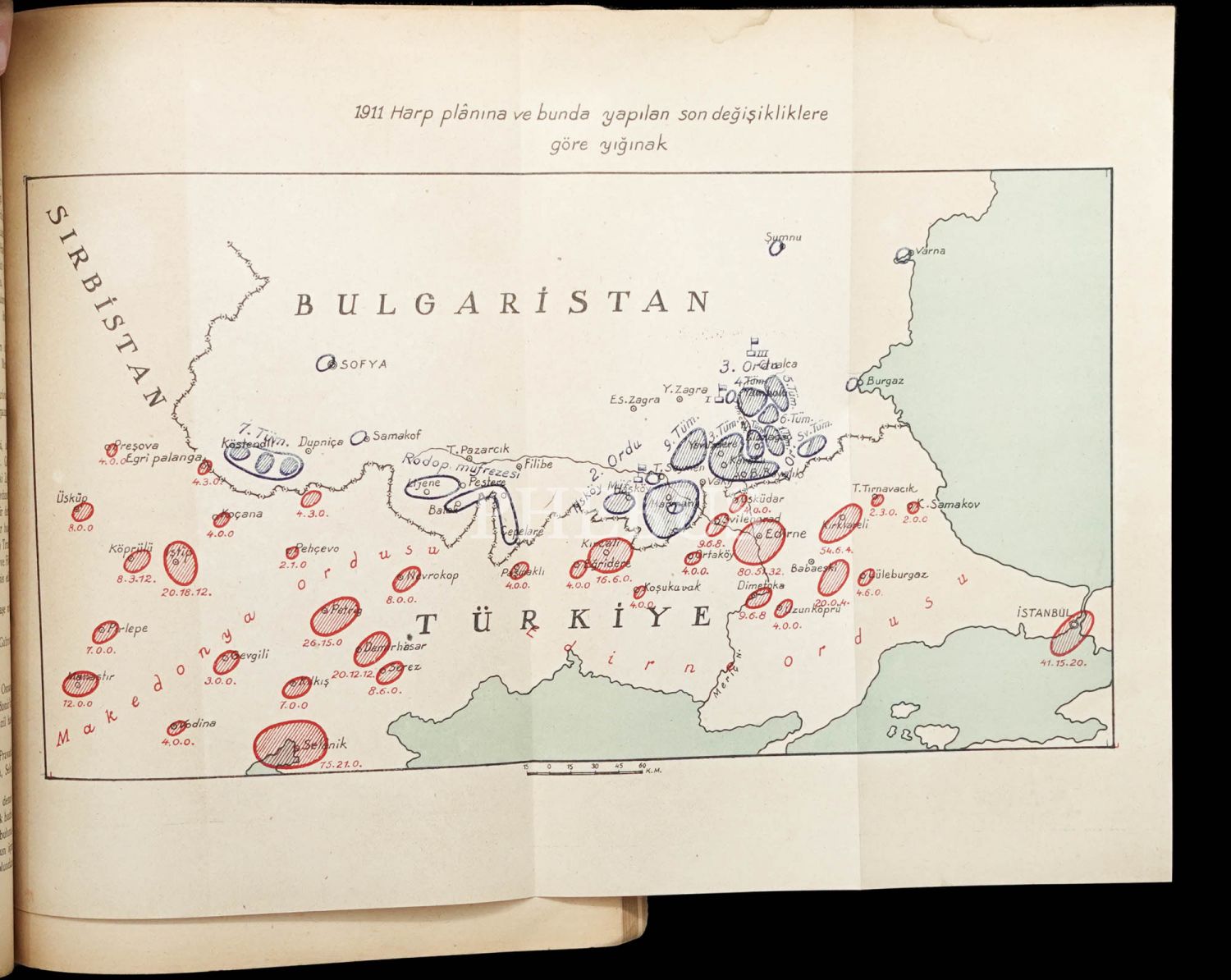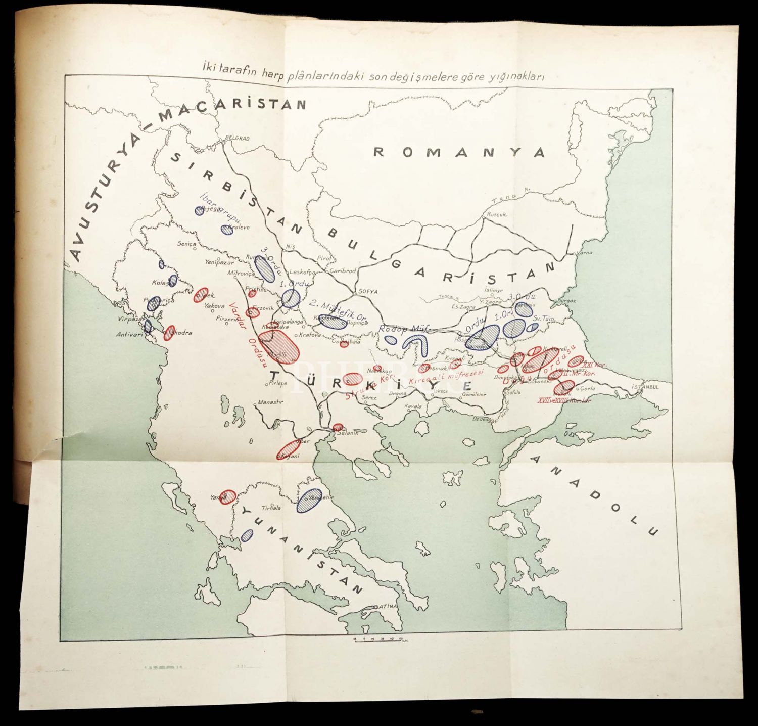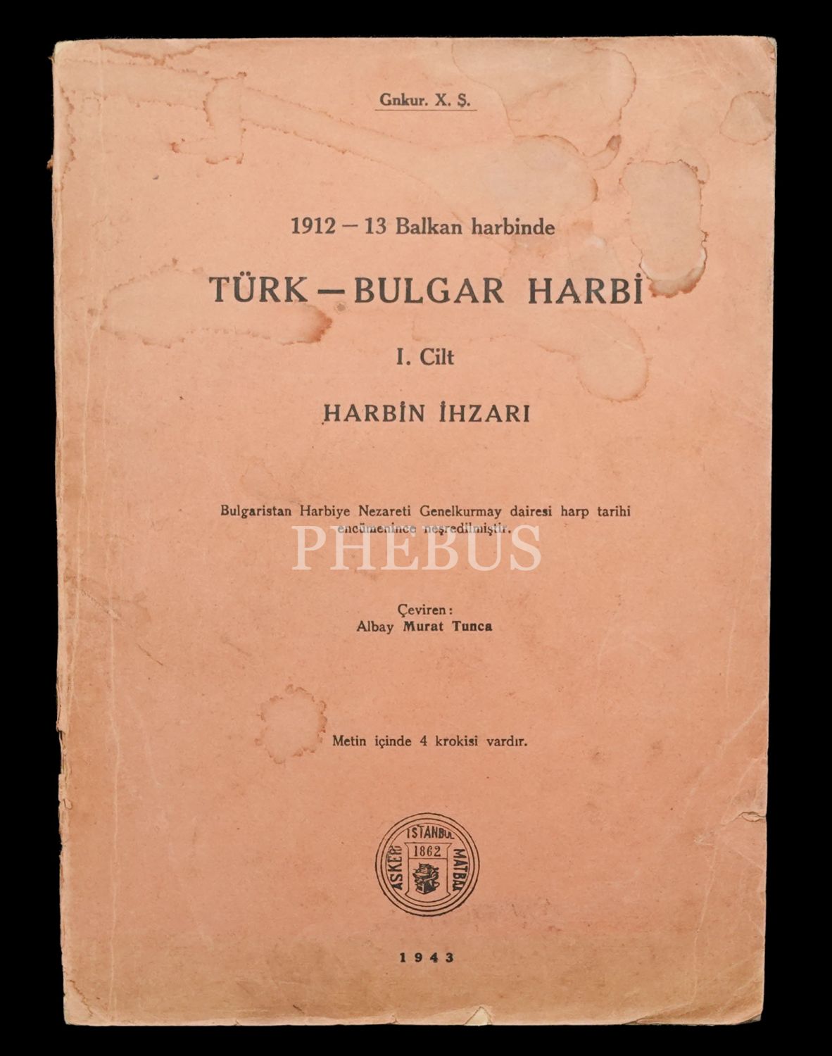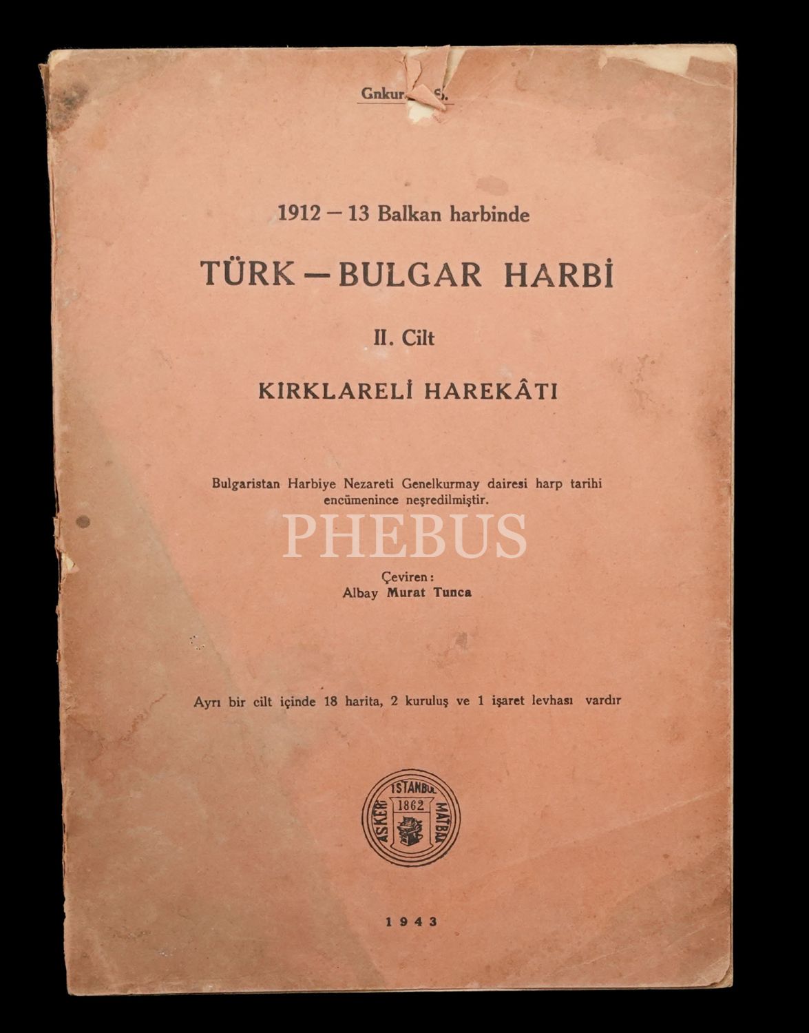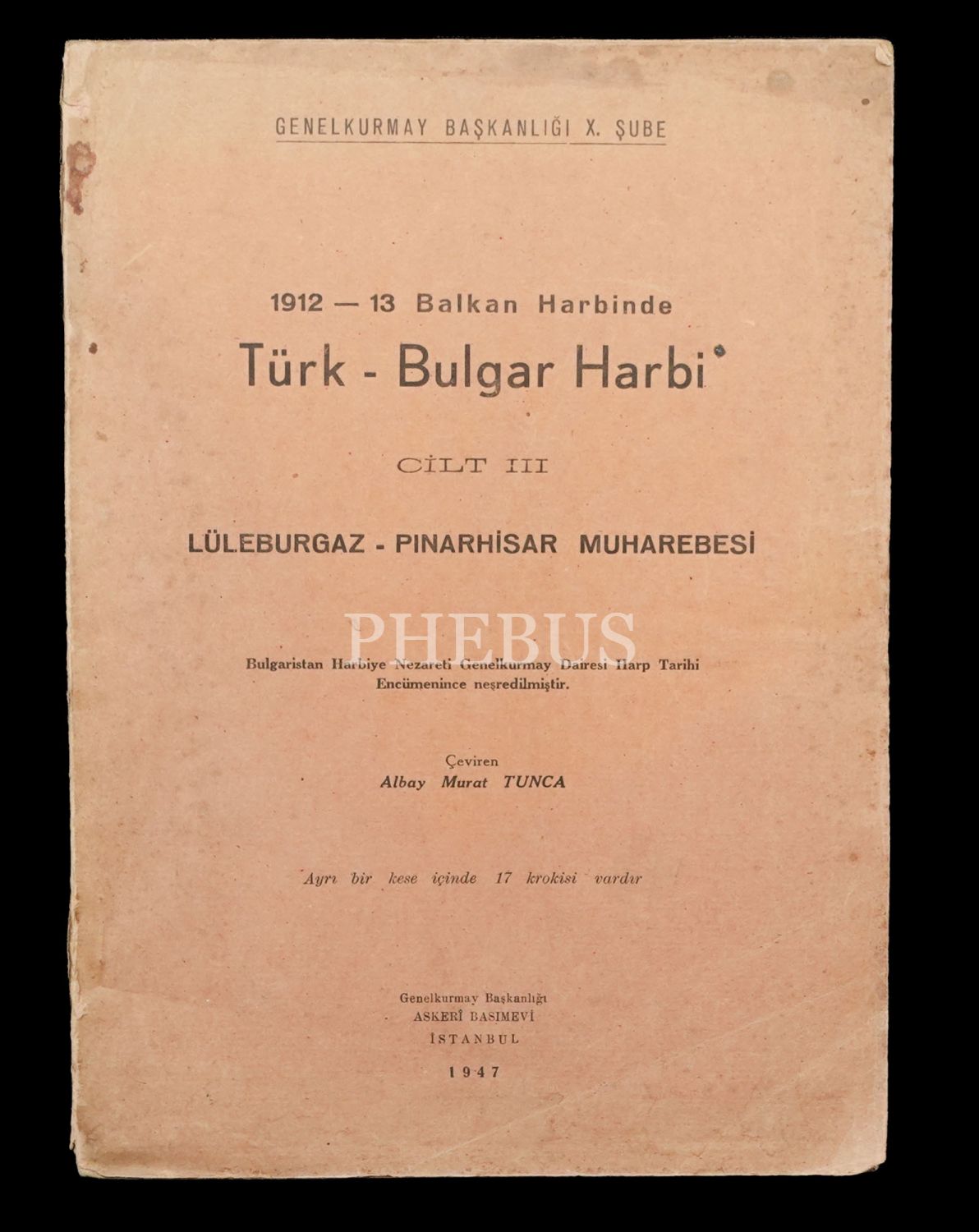 1912-13 BALKAN HARBİNDE TÜRK-BULGAR HARBİ (3 Cilt) / Harbin İhzarı - Kırklareli Harekâtı - Lüleburgaz-Pınarhisar Muharebesi, çeviren: Albay Murat Tunca, 1943-43-47, 385+519+453 sayfa, 20x27 cm...