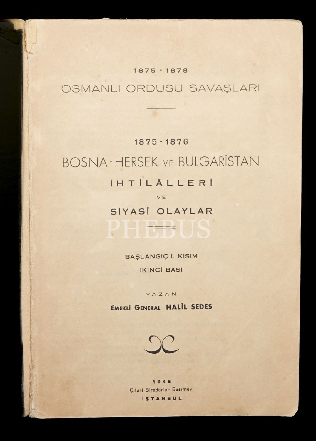 OSMANLI ORDUSU SAVAŞLARI: BOSNA-HERSEK VE BULGARİSTAN İHTİLÂLLERİ VE SİYASÎ OLAYLAR (Başlangıç I. ve II. Kısım), Halil Sedes, 1946, Çituri Biraderler Basımevi, 267+231 sayfa, 17x24 cm...