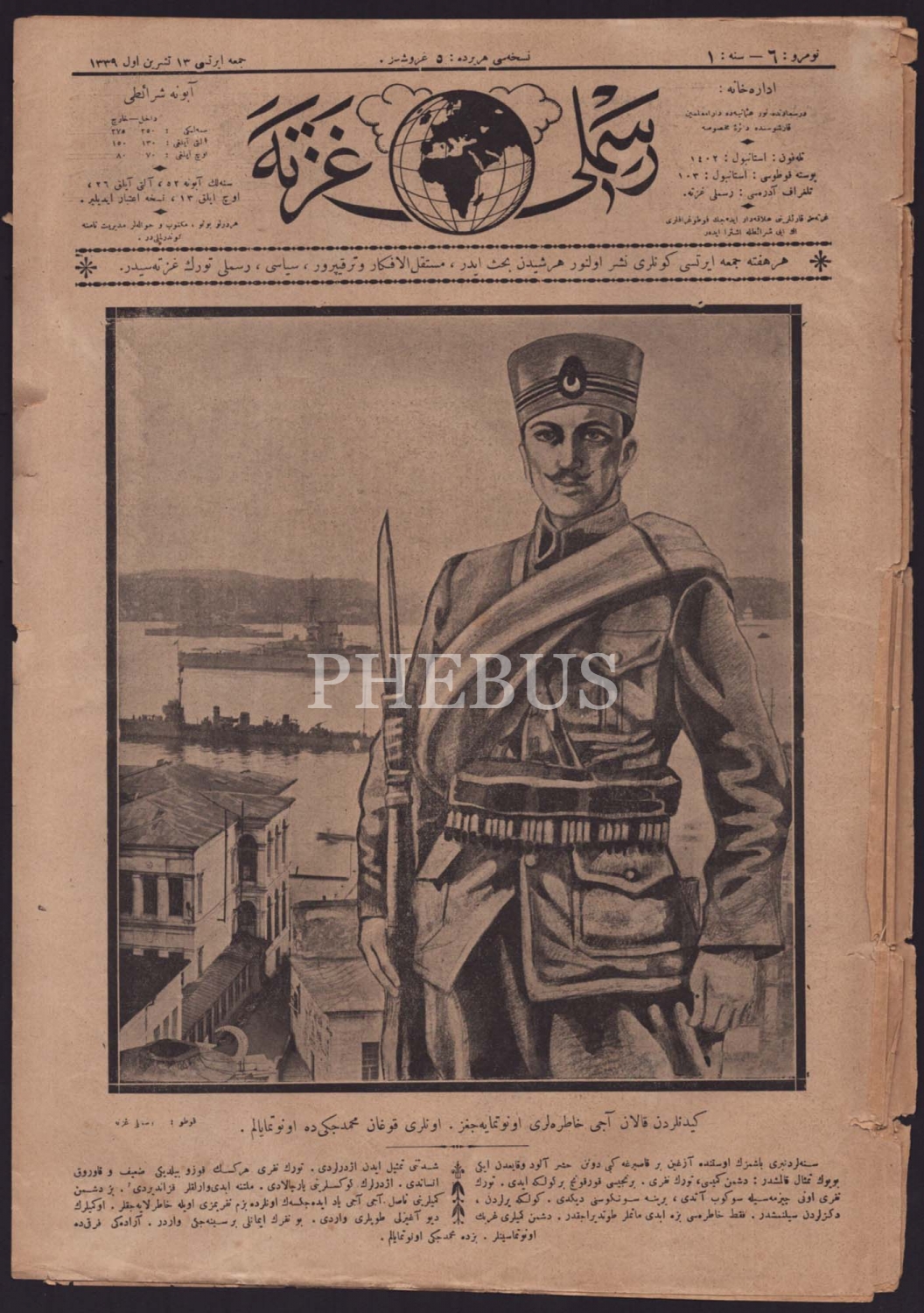 "Kendilerinden kalan hatıraları unutmayacağız. Onları kovan mehmetçiği de unutmayalım" manşetli RESİMLİ GAZETE´nin 13 Teşrinievvel 1339 tarihli 6. sayısı, 8 sayfa, 28x39 cm...