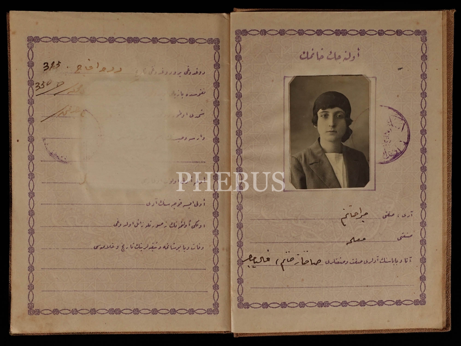 Türkiye Cumhuriyeti Adliye Vekaleti tarafından Muallime Müberra Hanım ve Muallim Zekai Bey´e verilen evlenme cüzdanı, 25 Haziran 1928, 11x16 cm...