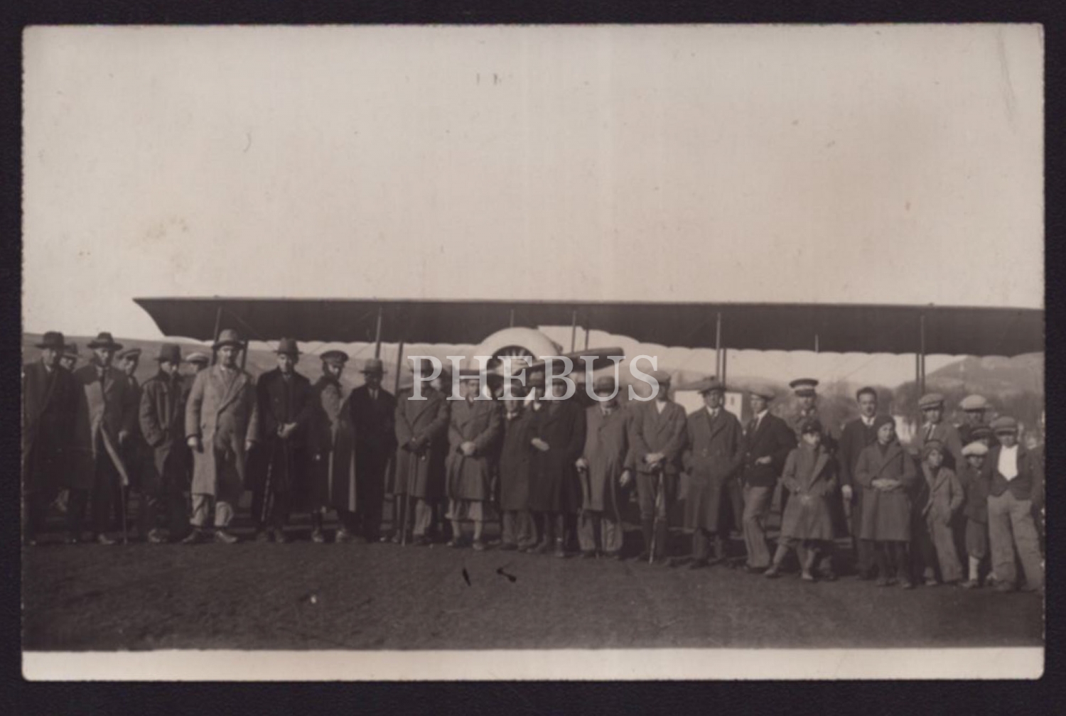 Türk Havacılık tarihinin unutulmaz isimlerinden Vecihi Hürkuş´un da yer aldığı heyetin tayyare önünde aldırdığı hatıra fotoğrafı, 14x9 cm...