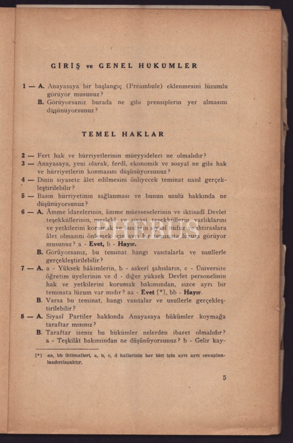 ANAYASA KOMİSYONUNUN ANKETİ, 1960, İsmail Akgün, 16x24 cm...