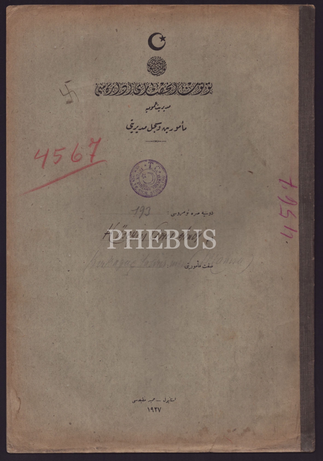 Manisa Kırkağaç Tütün Kontrol Memuru Hüseyin Avni Beyefendi adına Türkiye Cumhuriyeti Tütün İnhisarı İdaresi tarafından oluşturulan memur sicil dosyası, 1927, Hamid Matbaası, 12 sayfa, 27x39 cm...