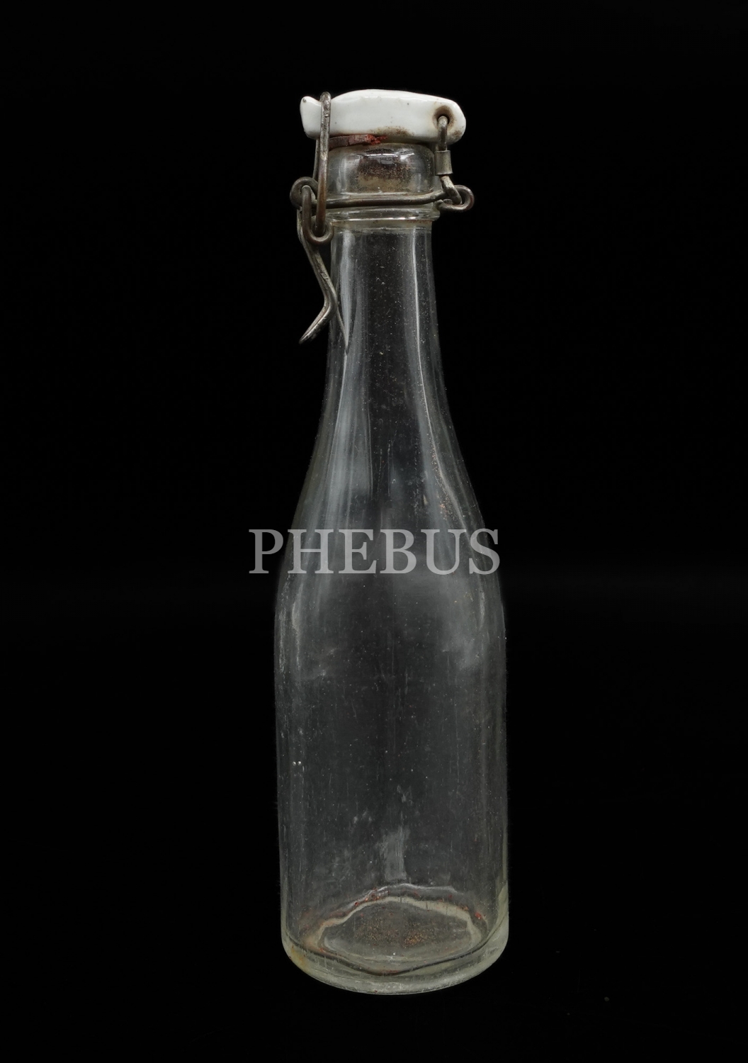 Osmanlıca "İsmail Hakkı Sinalko" yazılı orijinal porselen kapağıyla cam gazoz şişesi, 22 cm...