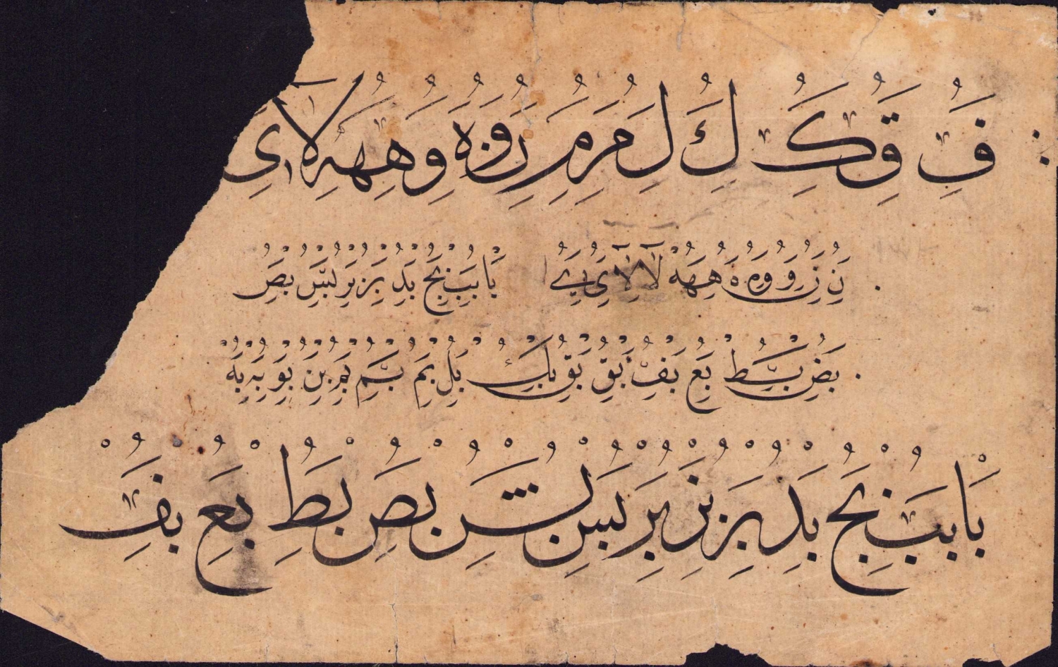 Sülüs Nesih hurufat meşki, haliyle, 22x14 cm.