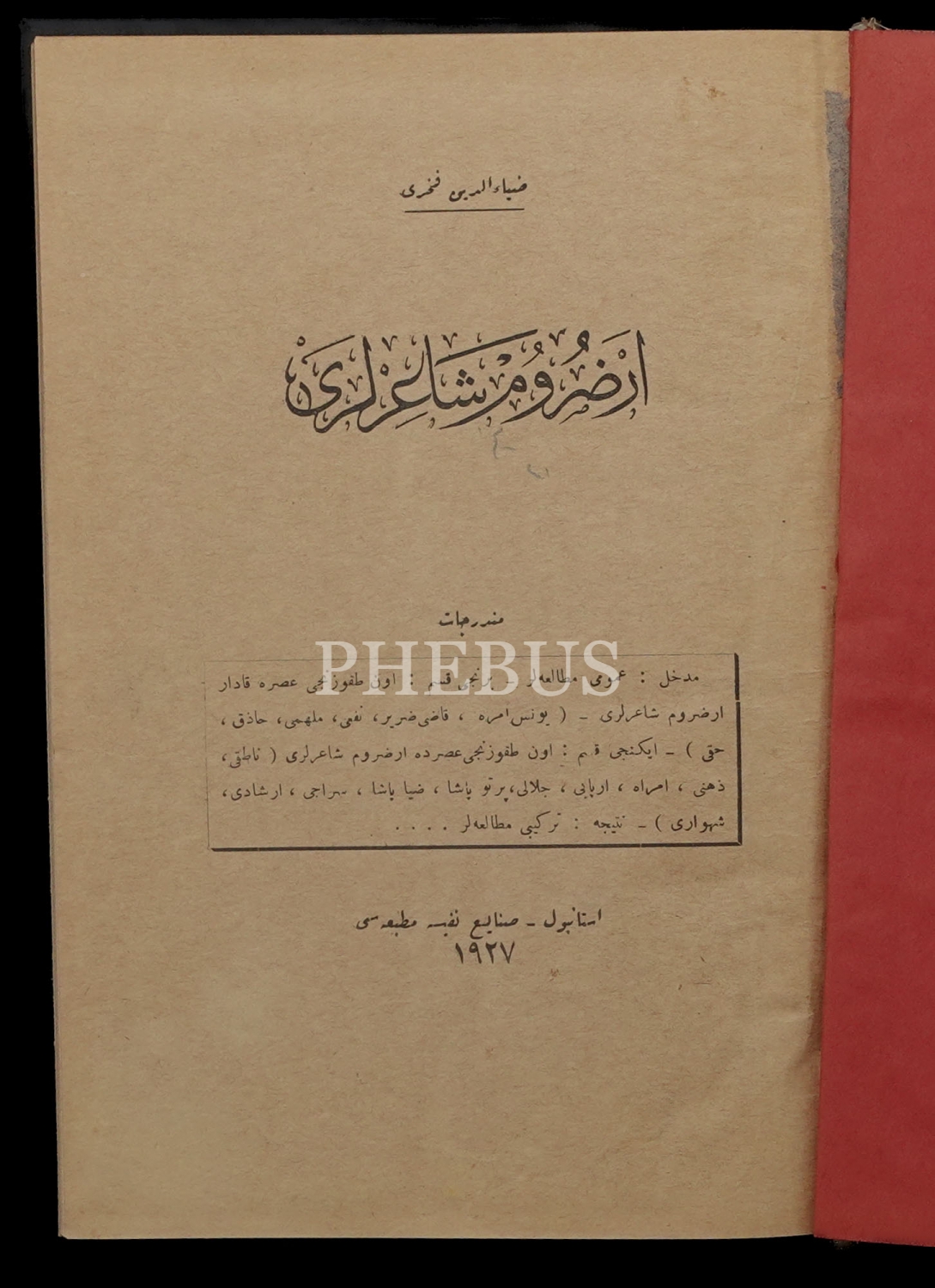 ERZURUM ŞAİRLERİ, Ziyaeddin Fahri [Fındıkoğlu], 1927, Sanayi-i Nefise Matbaası, 130 sayfa, 16x24 cm...