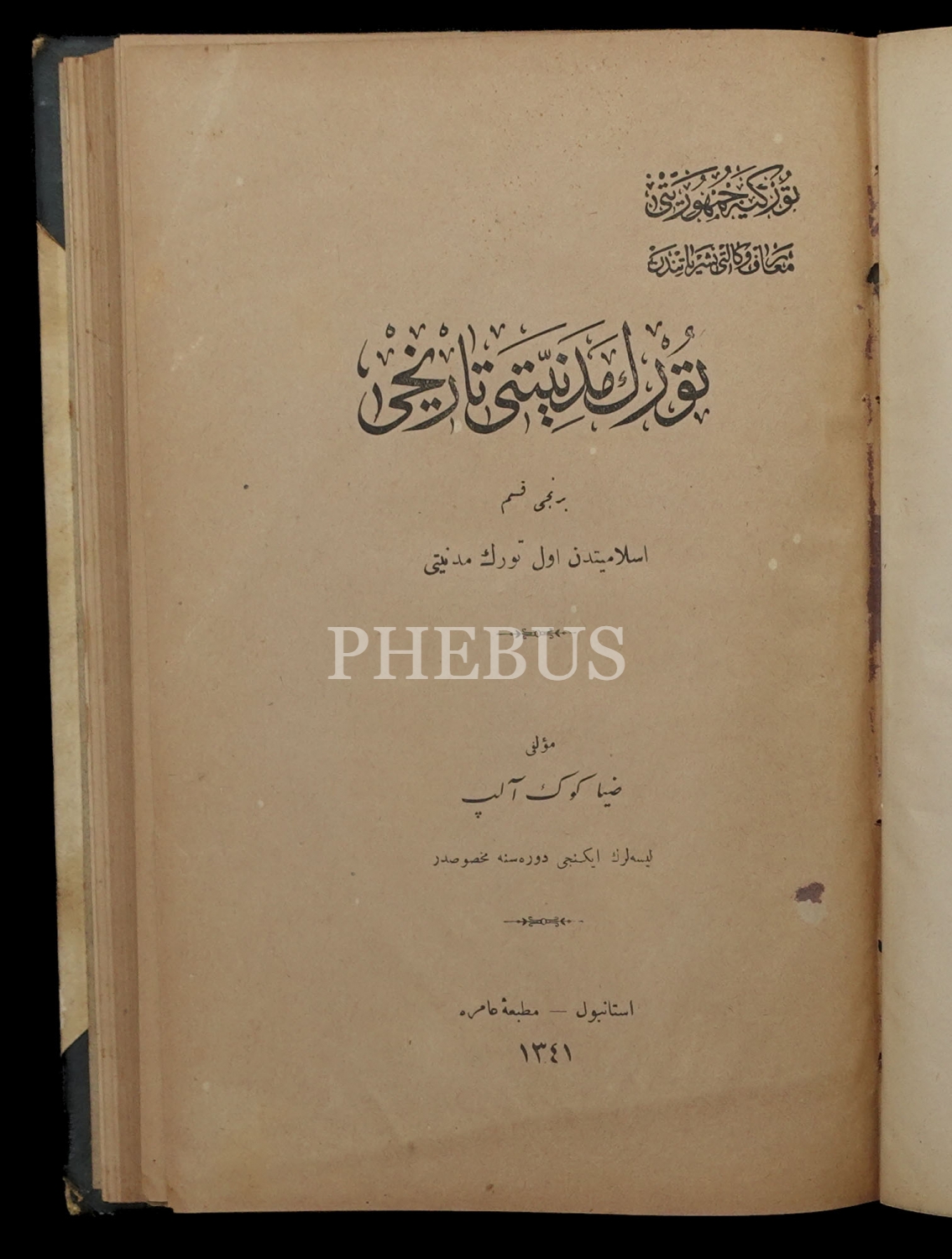 TÜRK MEDENİYETİ TARİHİ (1. Kısım), Ziya Gökalp,1341, Matbaa-i Âmire, 351 sayfa, 17x24 cm...