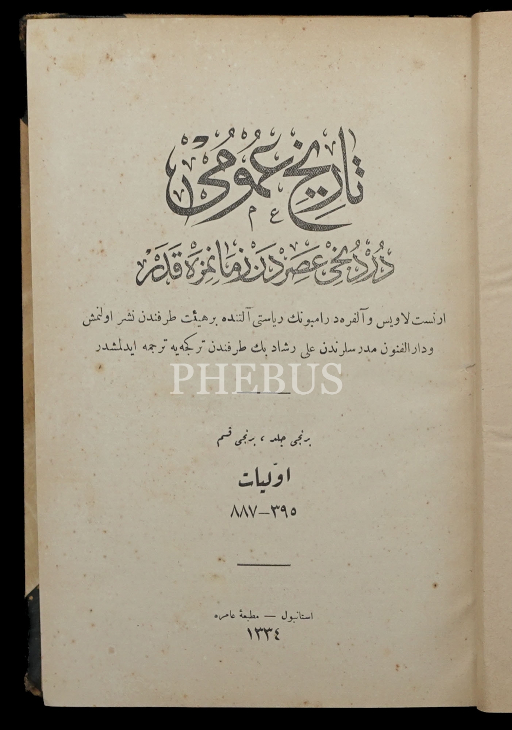 TARİH-İ UMUMİ (Dördüncü Asırdan Zamanımıza Kadar), (1. Cilt- 1. Kısım:Evveliyât: M.S. 395-887), Ernest Lavisse-Alfred Rambaud, (çeviren: Ali Reşad), 1334, Matbaa-i Âmire, 576 sayfa, 17x24 cm...