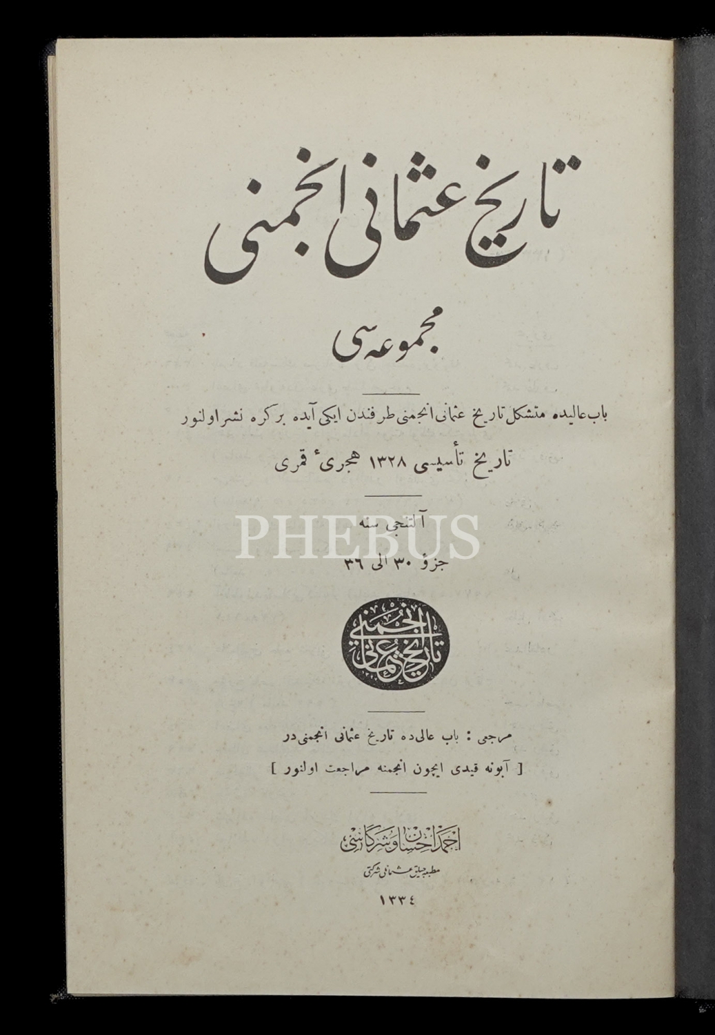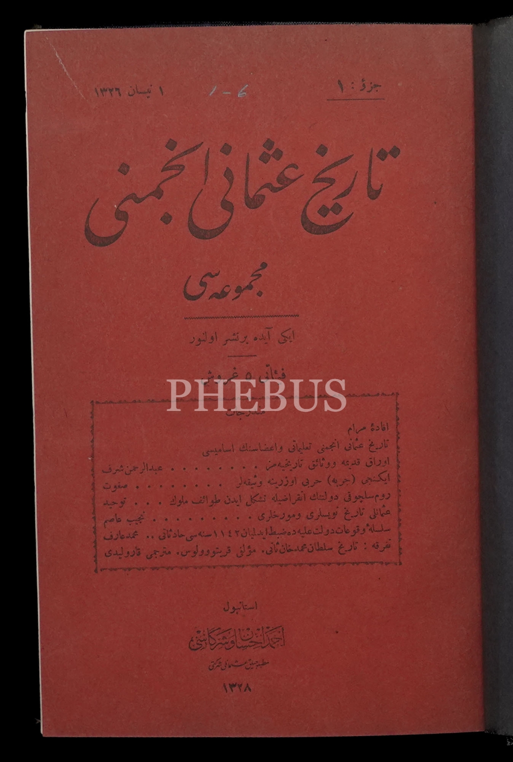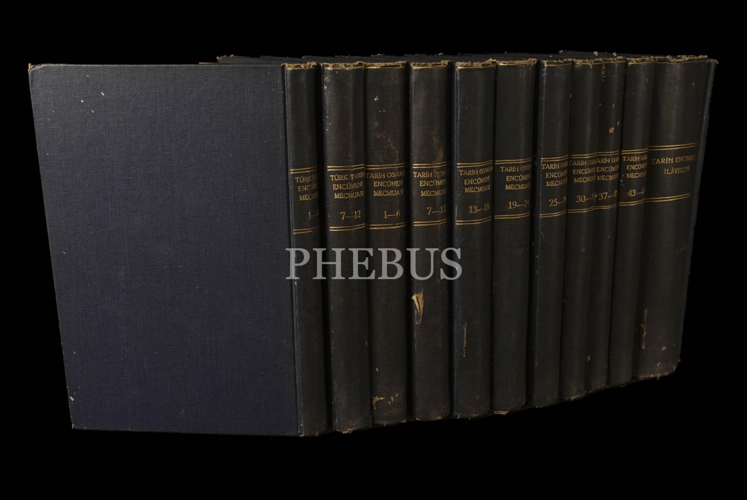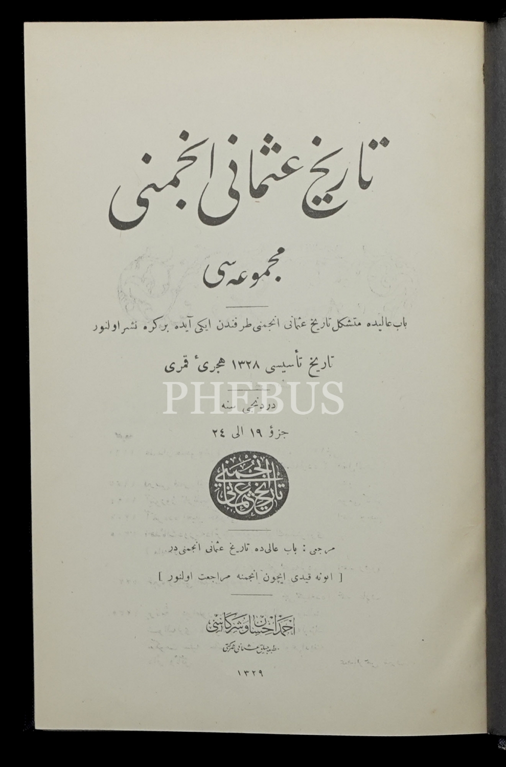 TÂRÎH-i OSMÂNÎ ENCÜMENİ MECMUASI'nın 1326-1336 yılları arasında yayımlanan 50 sayısı (1-49 sıralı, 77 müstakil), TÜRK TARİH ENCÜMENİ MECMUASI'nın 1340-1341 yılları arasında yayımlanan ilk 12 sayısı ve "TARİH ENCÜMENİ İLAVELERİ"nden oluşan lot, Ahmed İhsan ve Şürekâsı Matbaası, 16x23 cm...