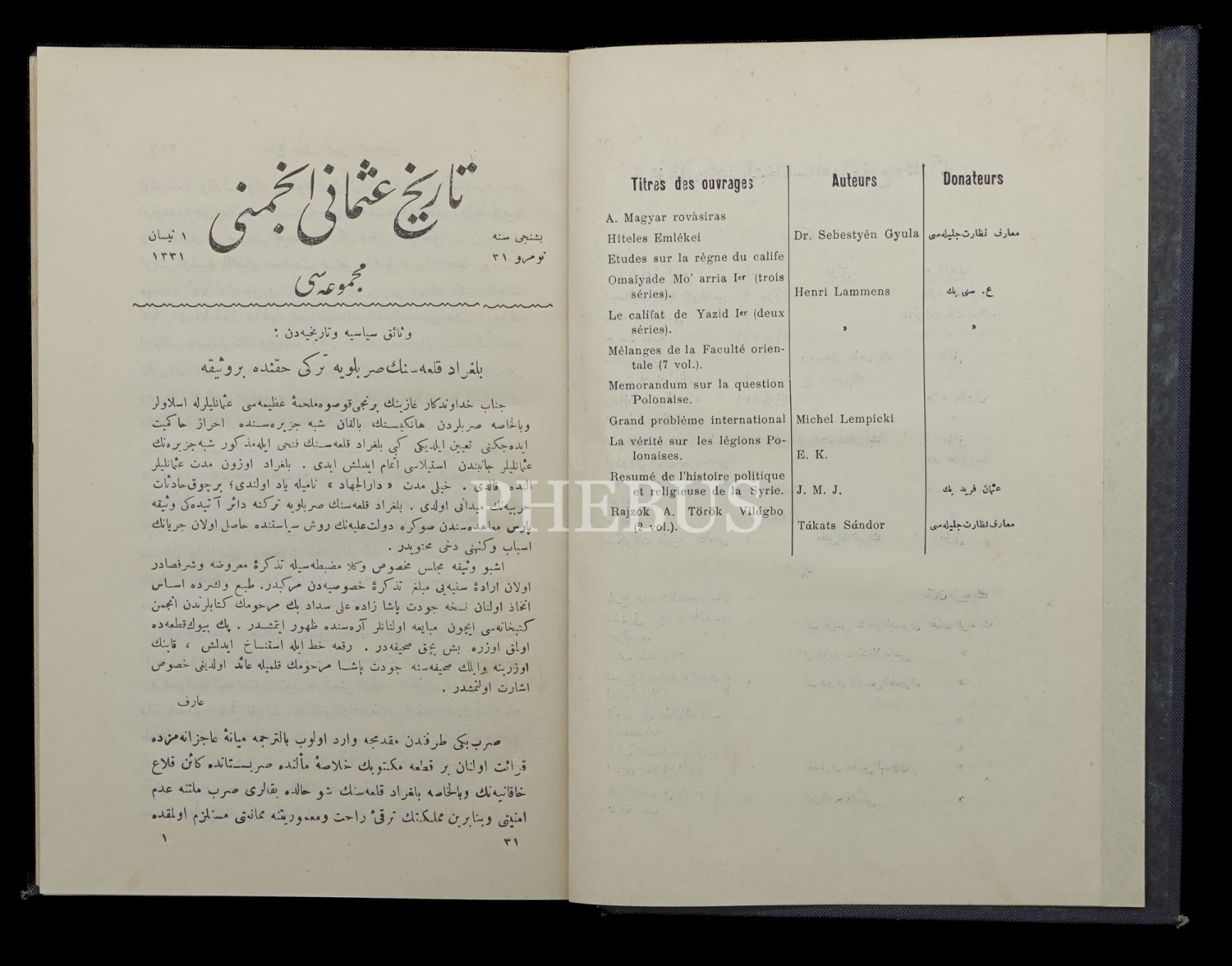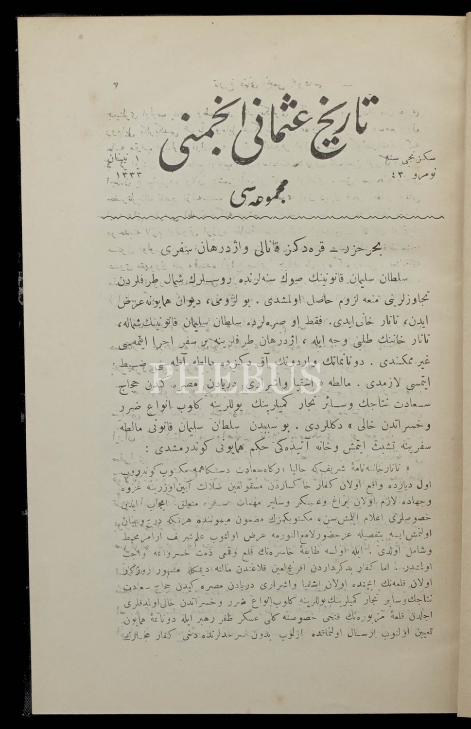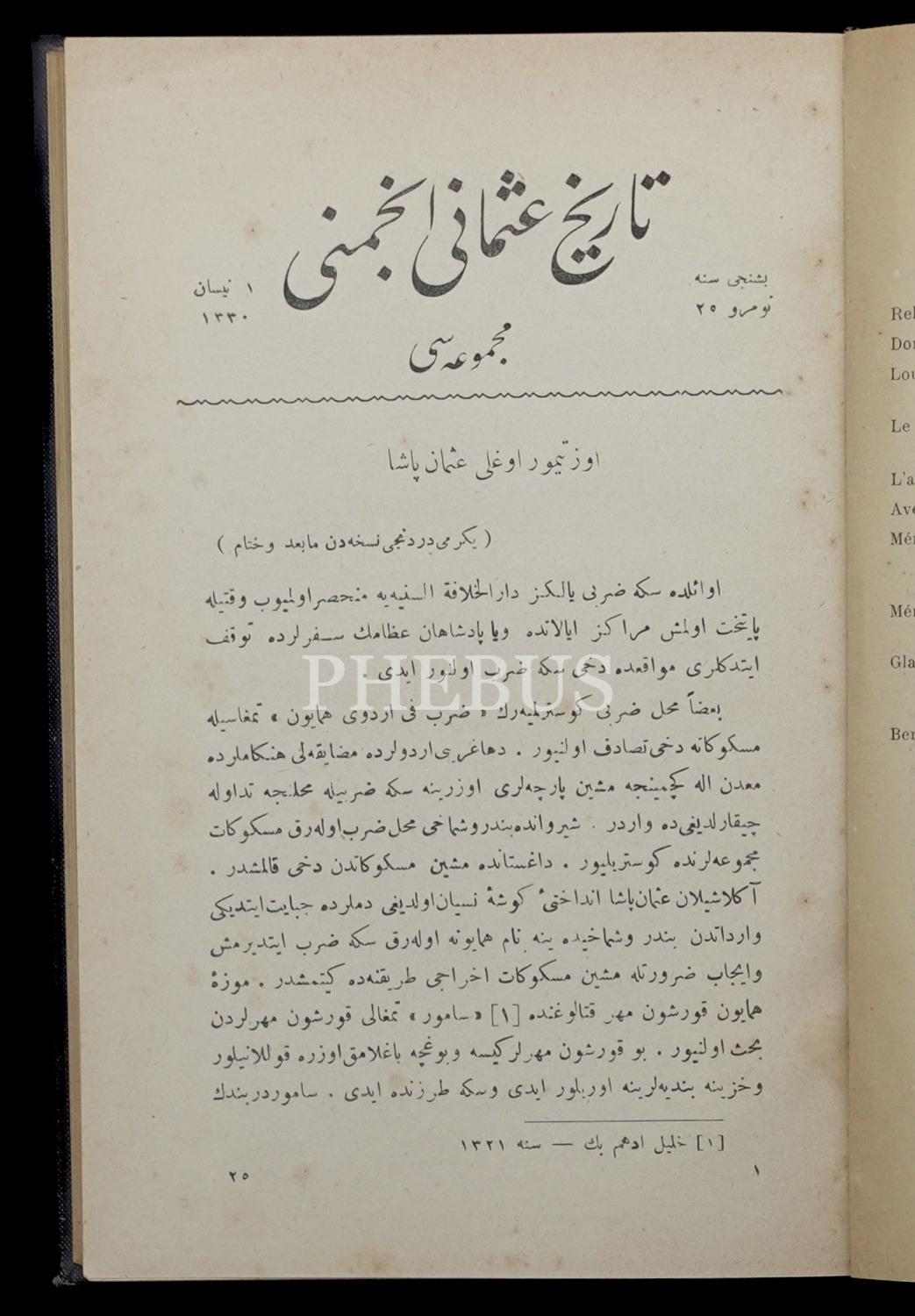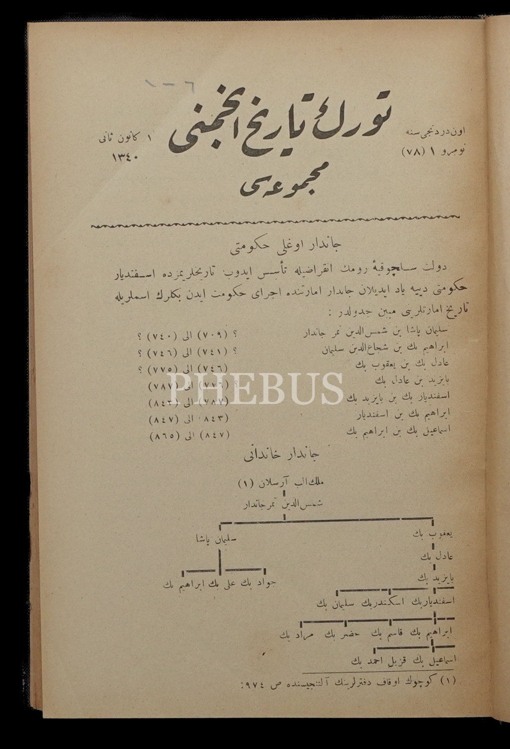 TÂRÎH-i OSMÂNÎ ENCÜMENİ MECMUASI'nın 1326-1336 yılları arasında yayımlanan 50 sayısı (1-49 sıralı, 77 müstakil), TÜRK TARİH ENCÜMENİ MECMUASI'nın 1340-1341 yılları arasında yayımlanan ilk 12 sayısı ve "TARİH ENCÜMENİ İLAVELERİ"nden oluşan lot, Ahmed İhsan ve Şürekâsı Matbaası, 16x23 cm...