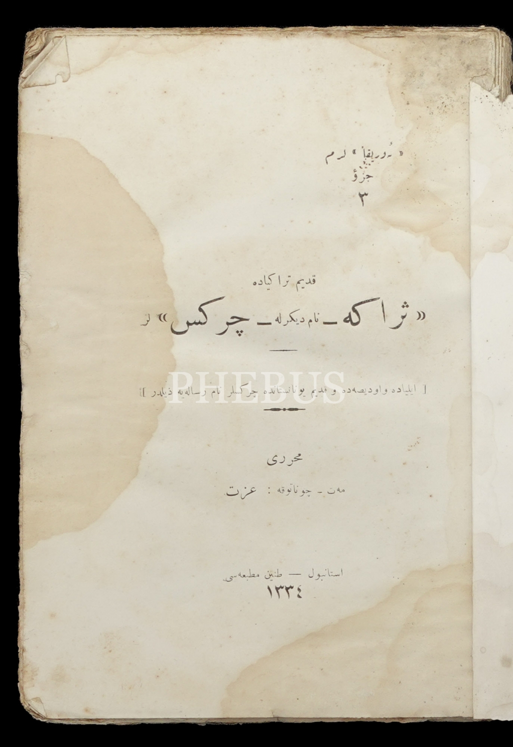 KADİM TRAKYA´DA TRAKE NAM-I DİĞER ÇERKES (Cüz:3), Met Çunatuka İzzet,1334, Tanin Matbaası, 228 sayfa, 15x21 cm...