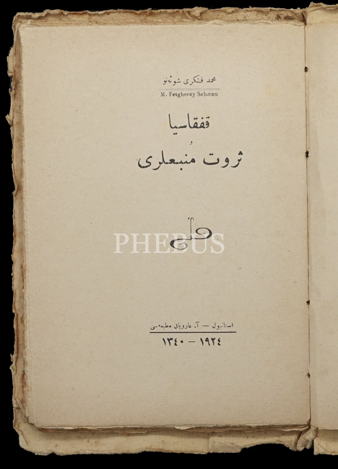KAFKASYA VE SERVET MENBALARI, Mehmed Fetgeri Şoenü, 1924, A. Garoyan Matbaası, 136 sayfa, 16x23 cm...