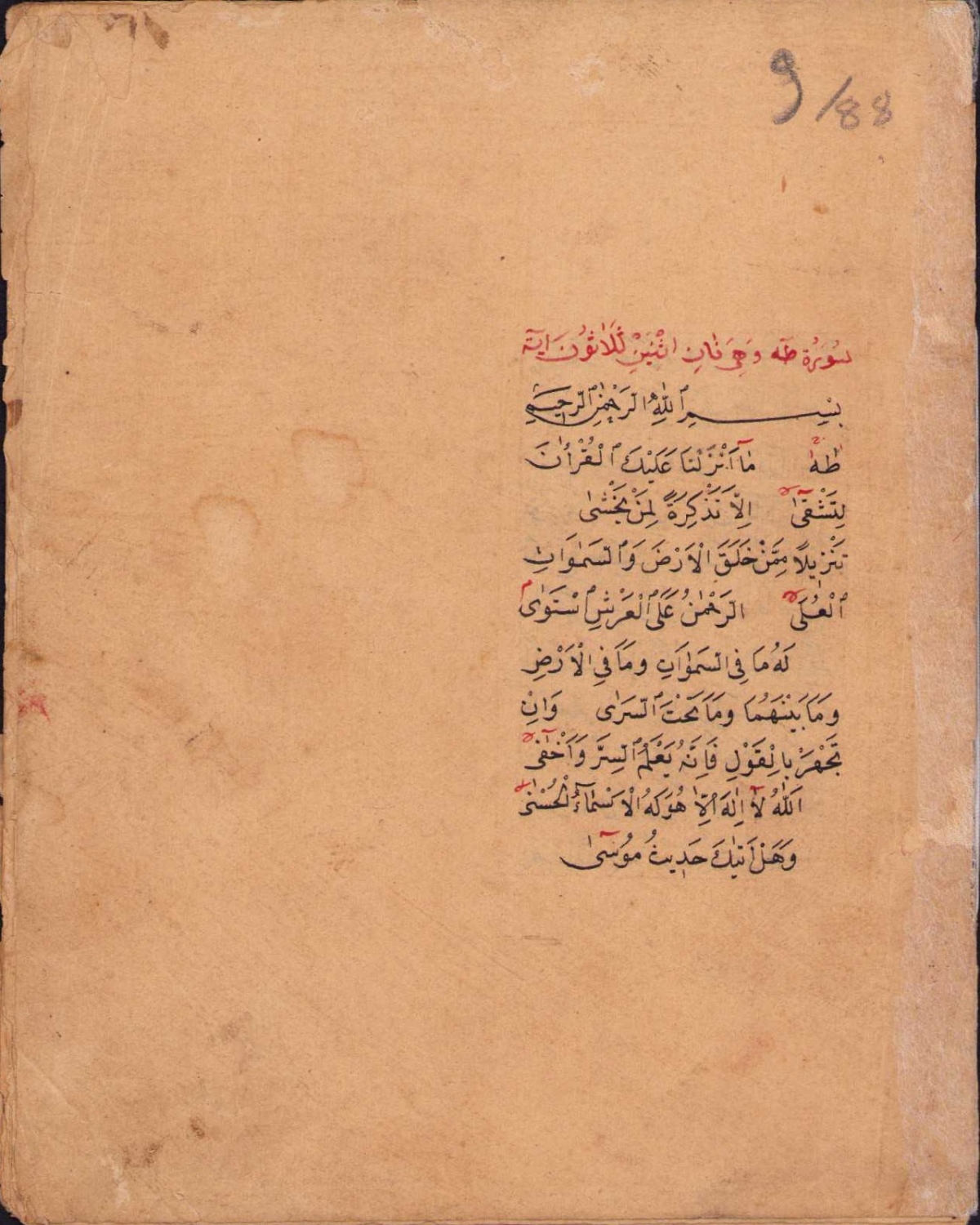 Taha Suresi, Nesih, 10 varak, 11x14 cm.