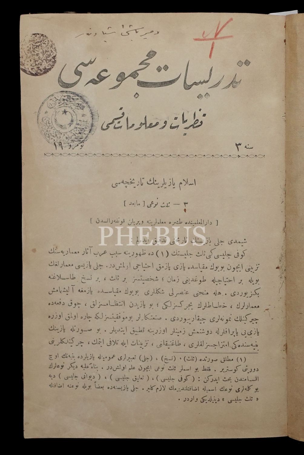 TEDRİSAT MECMUASI, (Yıl:3, Sayı:19-24 arası), 1328, 16x24 cm...