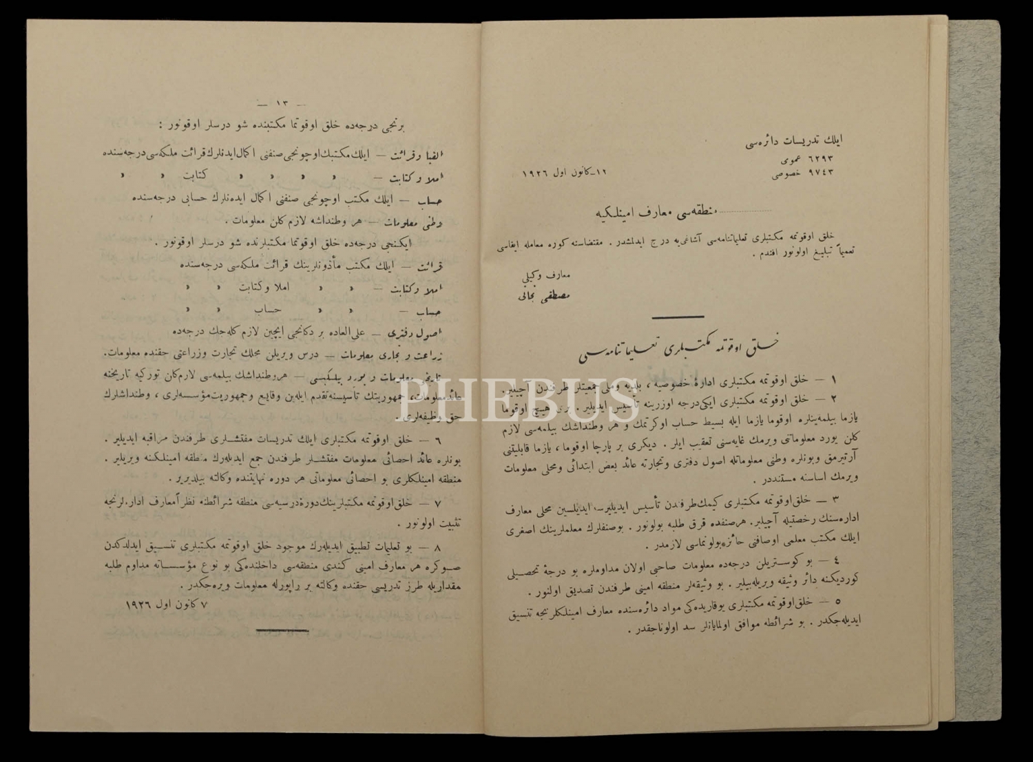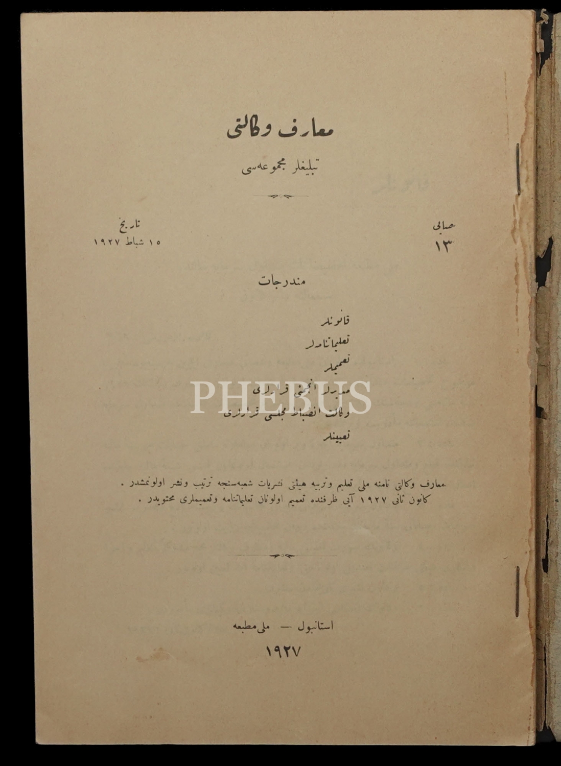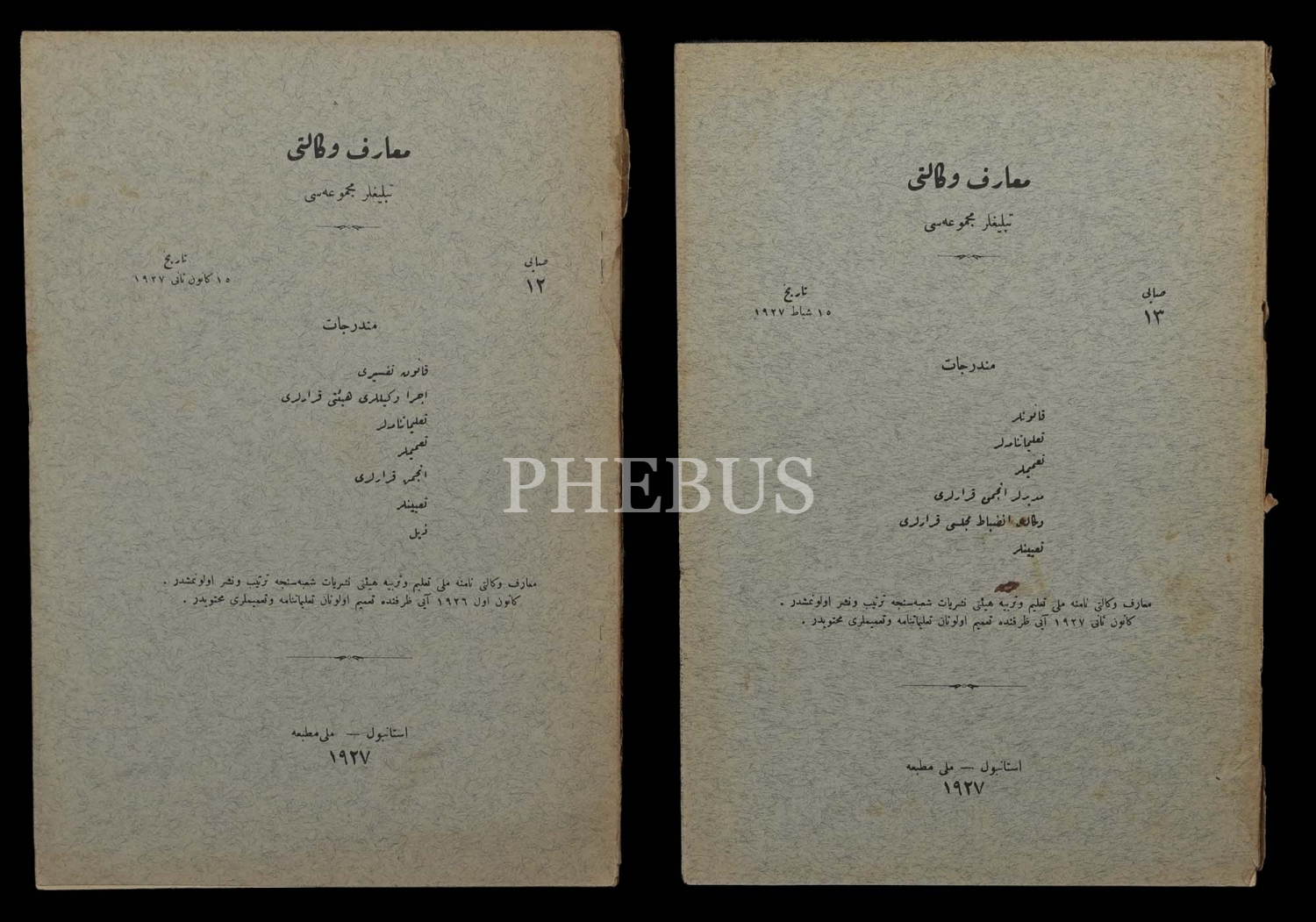 MAARİF VEKALETİ TEBLİĞLER MECMUASI´nın 12 ve 13. sayıları, 1927, Milli Matbaa, 83+85 sayfa, 17x24 cm...