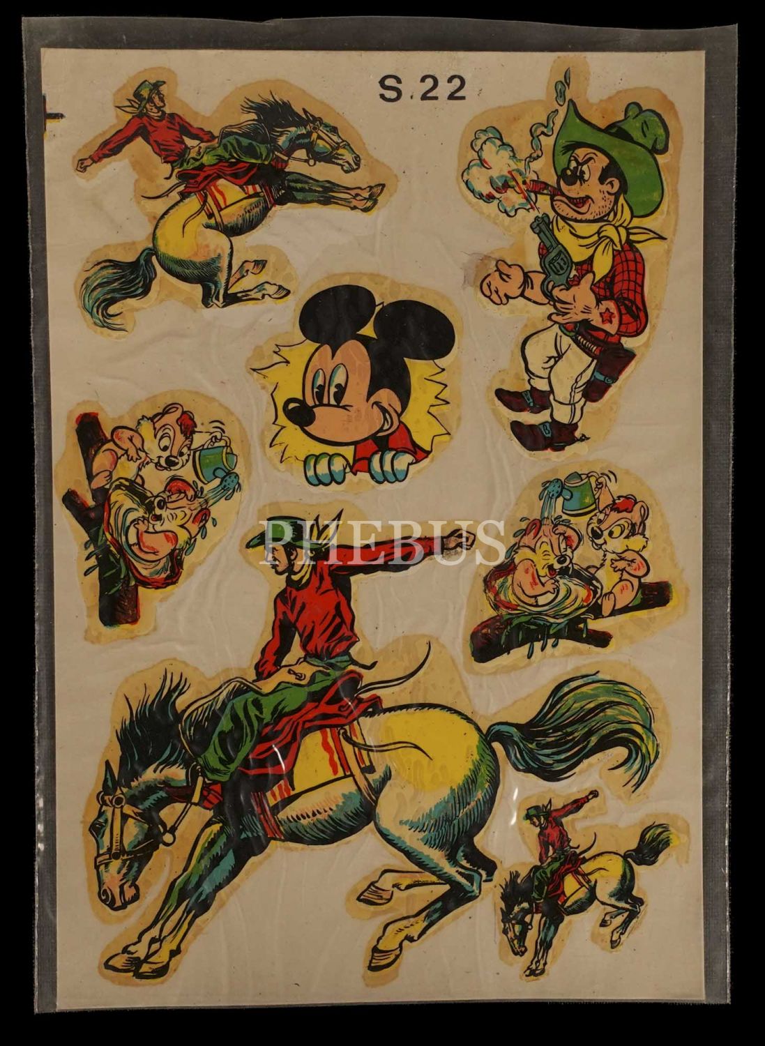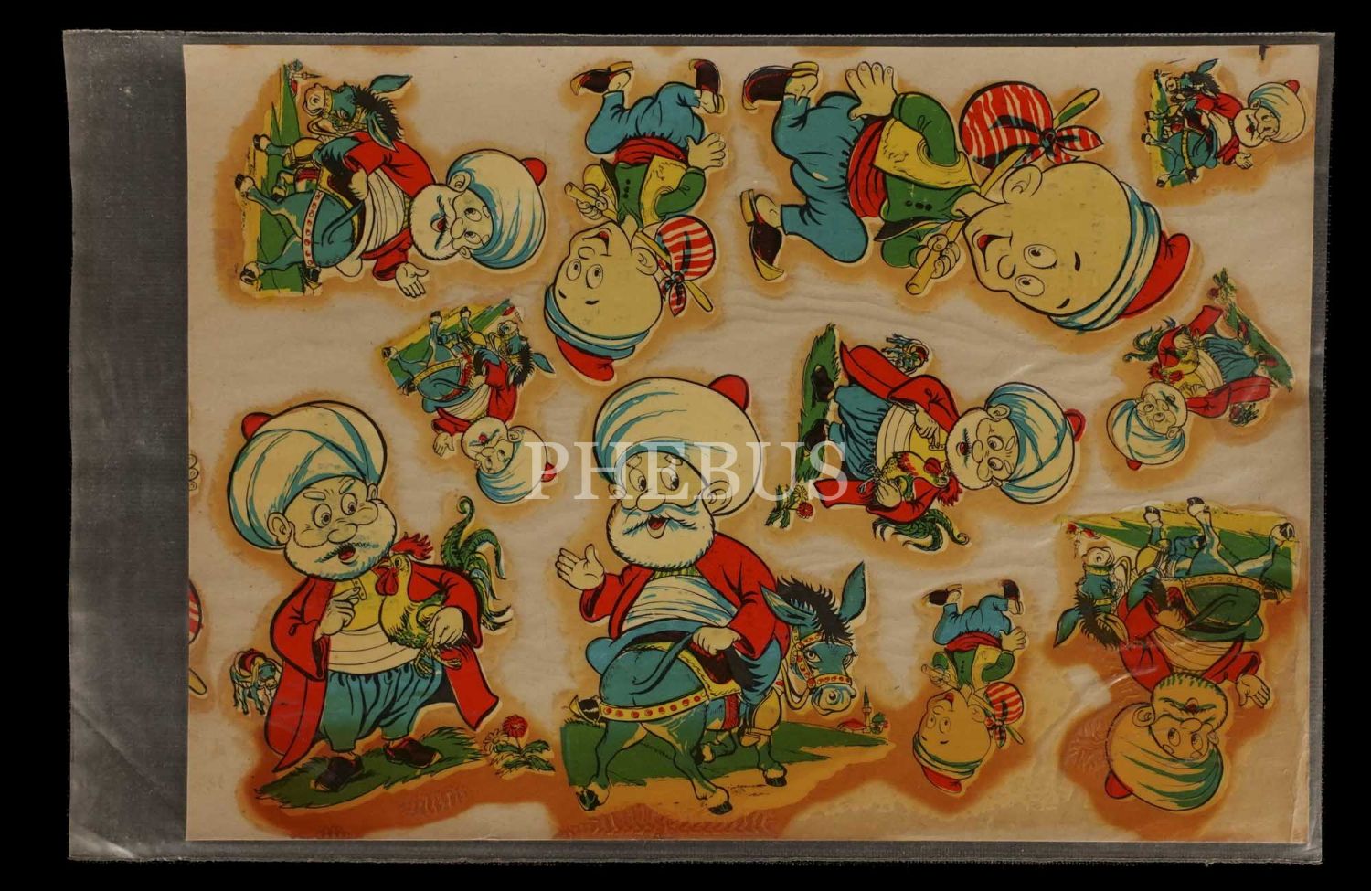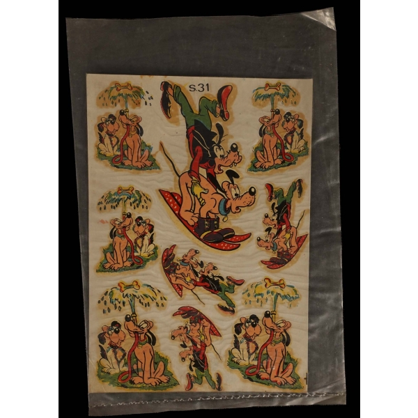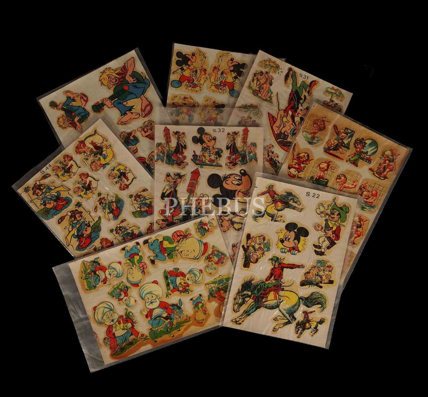 Mickey Mouse, Donald Duck, Goofy, Nasreddin Hoca ve Keloğlan gibi meşhur karakterlerin "Şahsuvar Çıkartmaları" tarafından basılan çıkartma setleri, toplam sekiz adet, 13x17 cm...