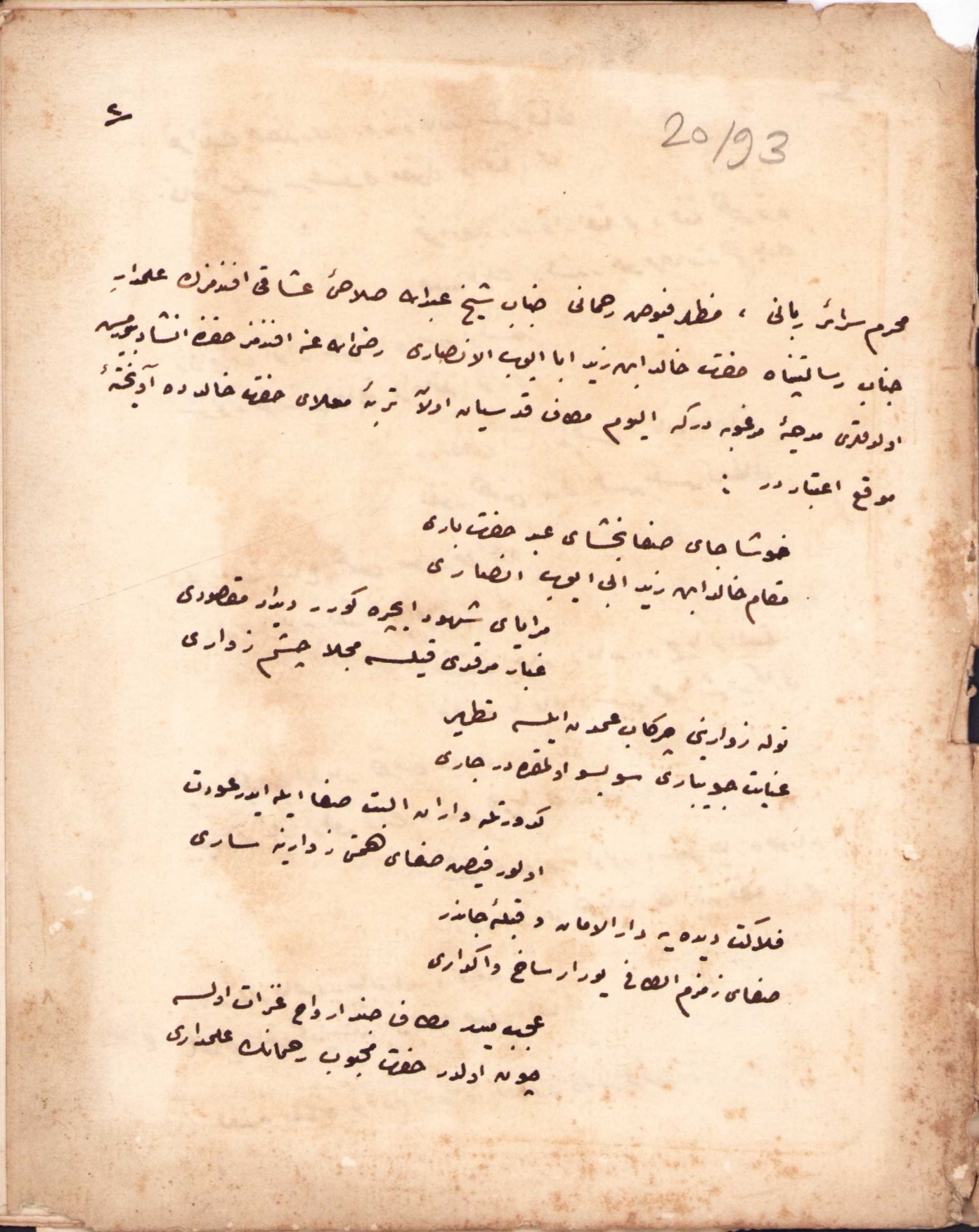Şeyh Abdullah Salahi Uşşaki'nin Eyyüb el Ensari için yazdığı medhiye ve Mevakiü'n-nücum isimli eserden kısım tercümeler yazılı mecmua, Osmanlıca, 10 varak, 17x21 cm.