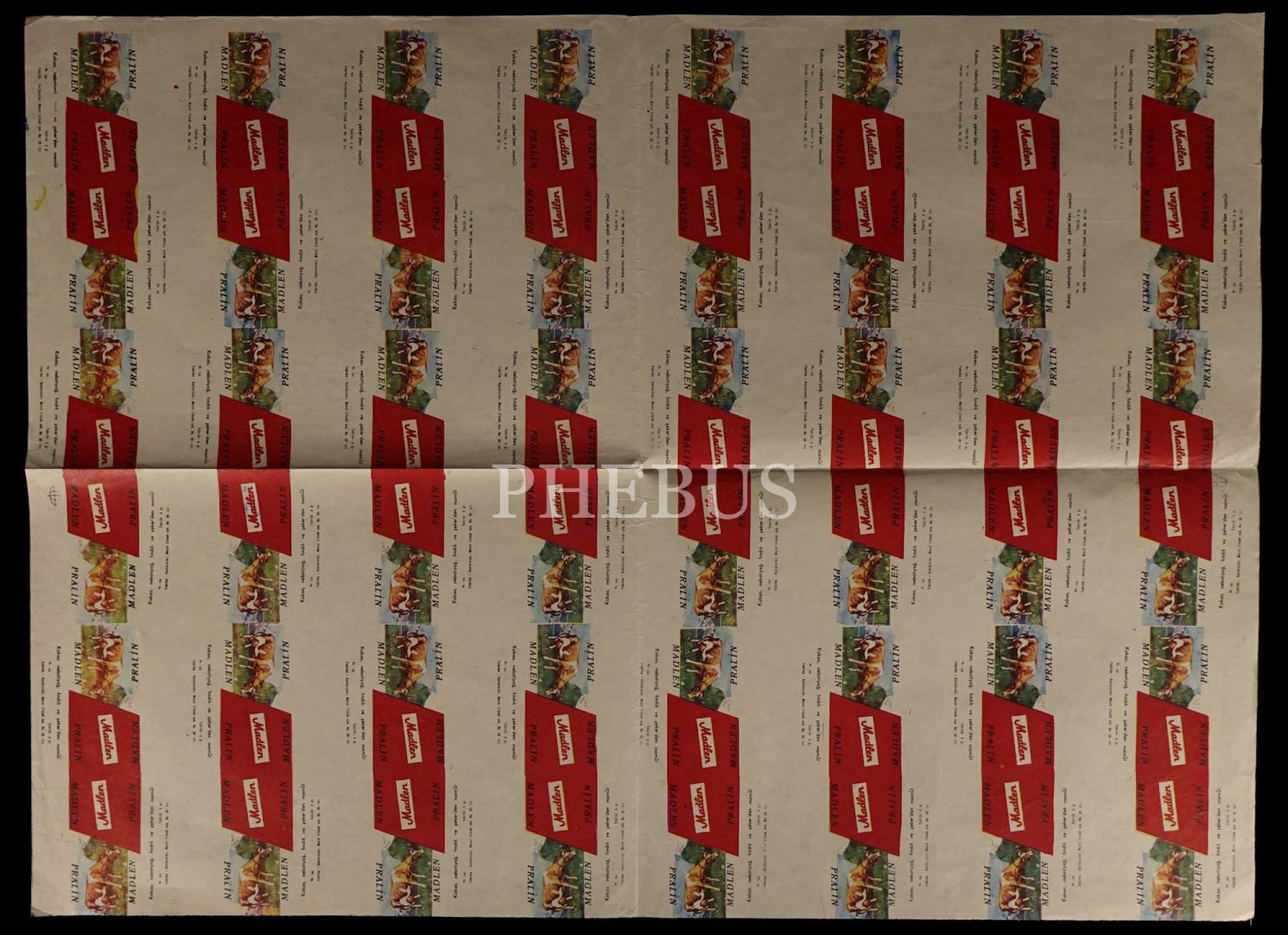 "Kakao, nebatiyağ, fındık ve şeker´den mamûl" Madlen Pralin´in ambalaj tasarımı, 49x67 cm...