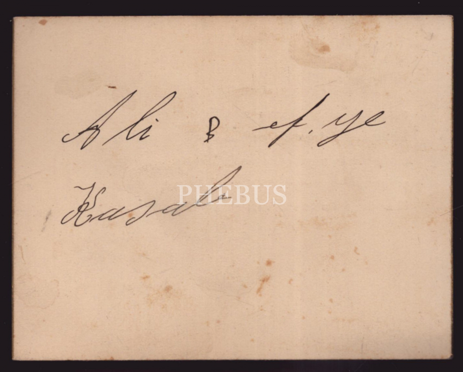Mermertaş Ticarethanesi Sahibi Hafız Zade A. Turan tarafından çocuklarının sünnet düğününe katılımı için "Ali Beyefendiye" gönderilen davetiye, açık halde 12x23 cm...