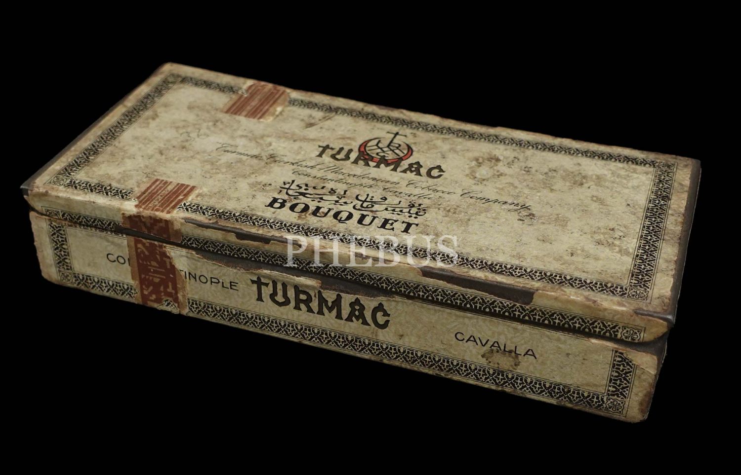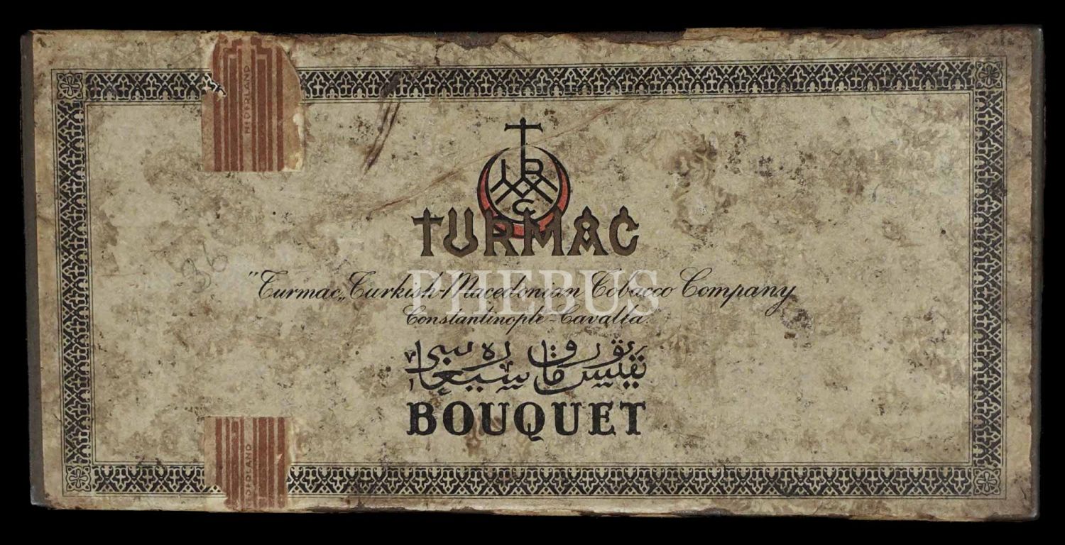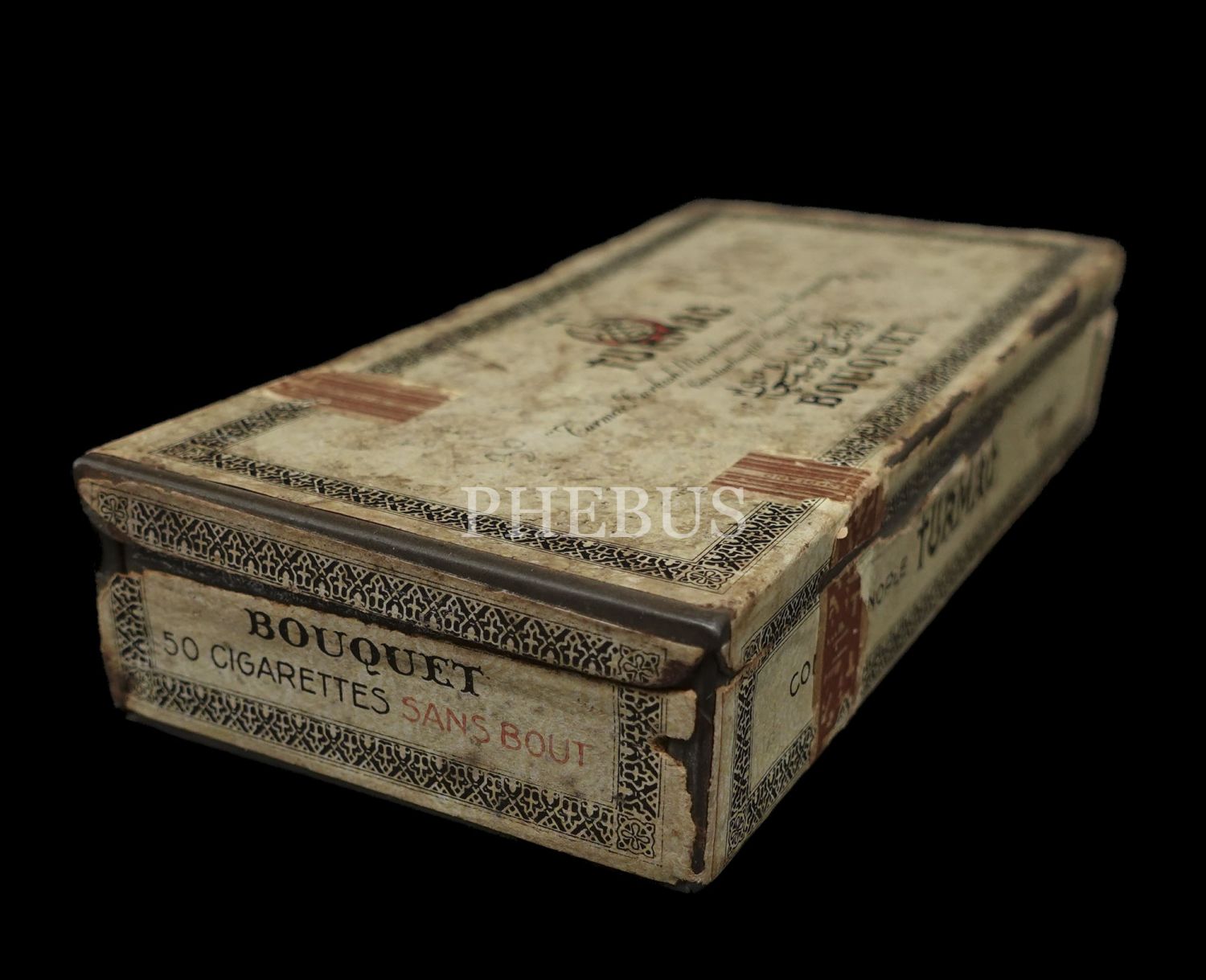 Osmanlıca-Fransızca yazılı Turmac "Bouquet" (Buket) teneke sigara kutusu, 15x7x3 cm...
