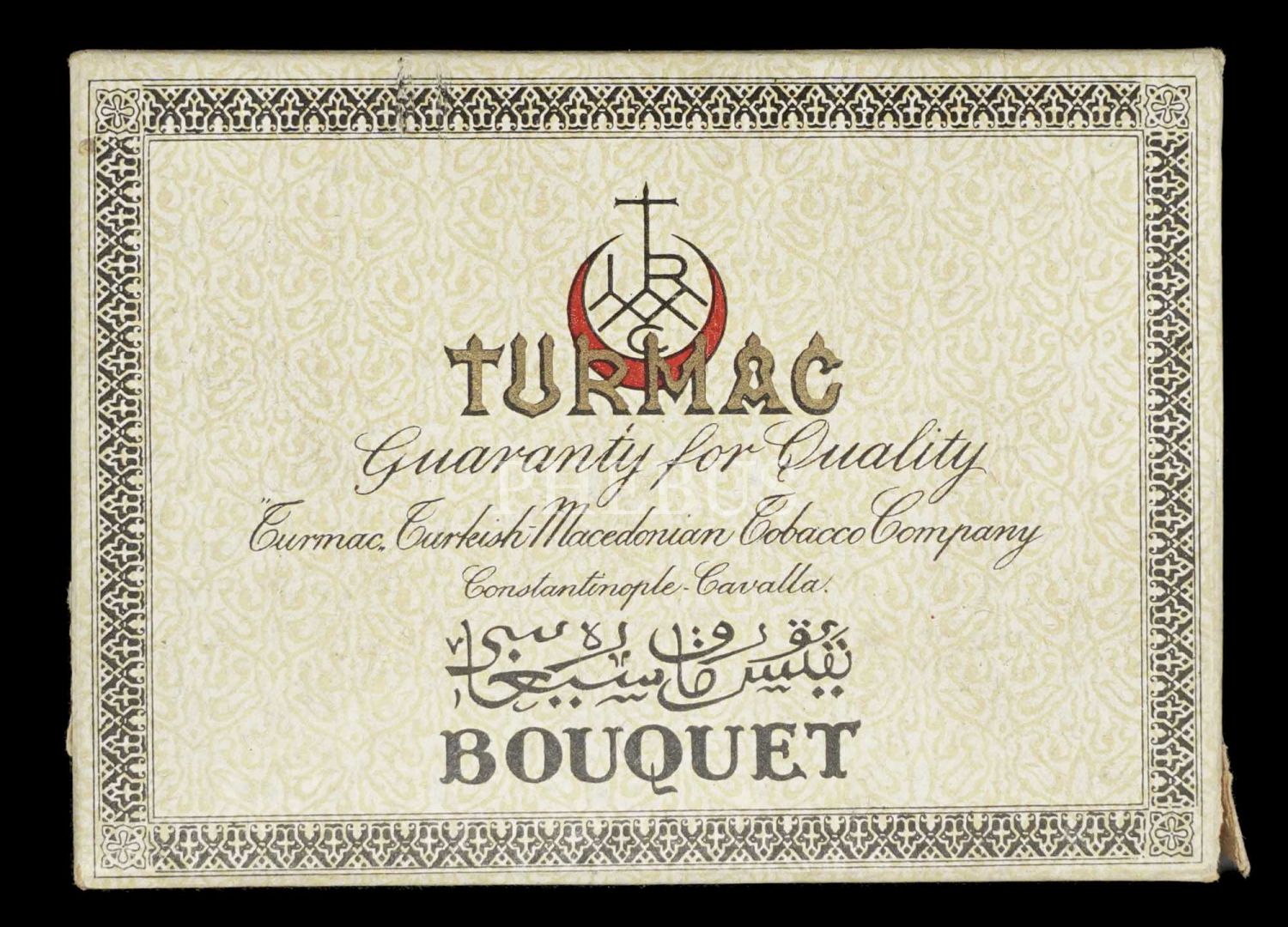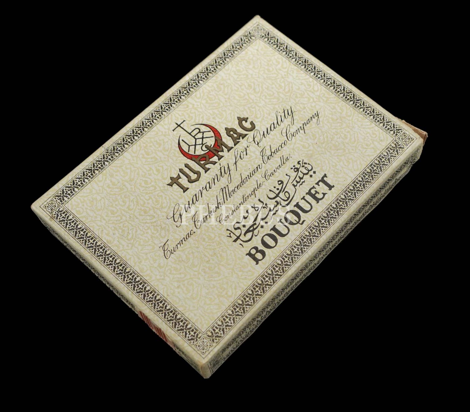 Osmanlıca-Fransızca yazılı Turmac "Bouquet" (Buket) karton sigara kutusu, 10x7x2 cm...