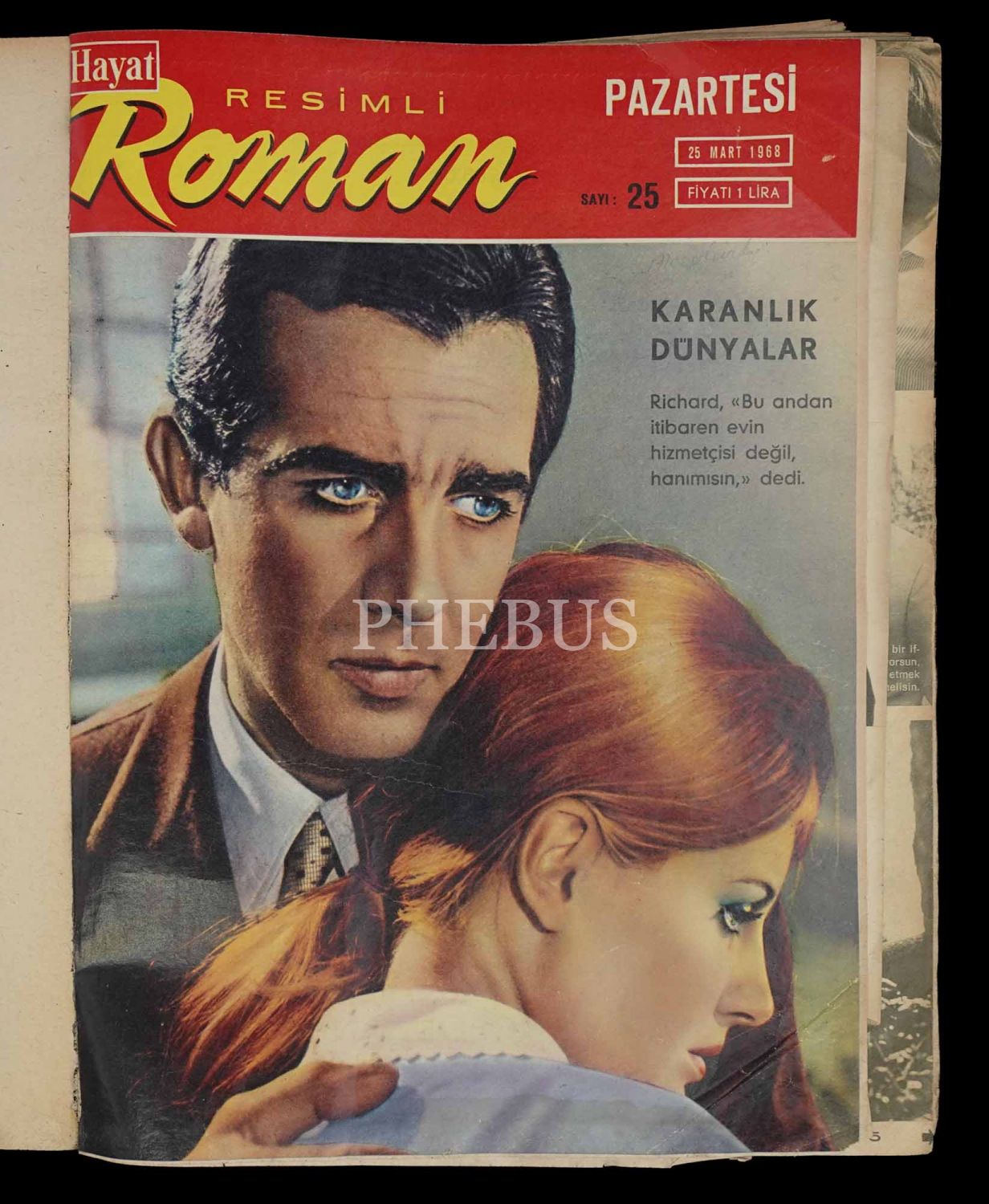 HAYAT RESİMLİ ROMAN dergisinin 1968 tarihli 2. cildi (25-46 arası sayılar takım), 26x34 cm...