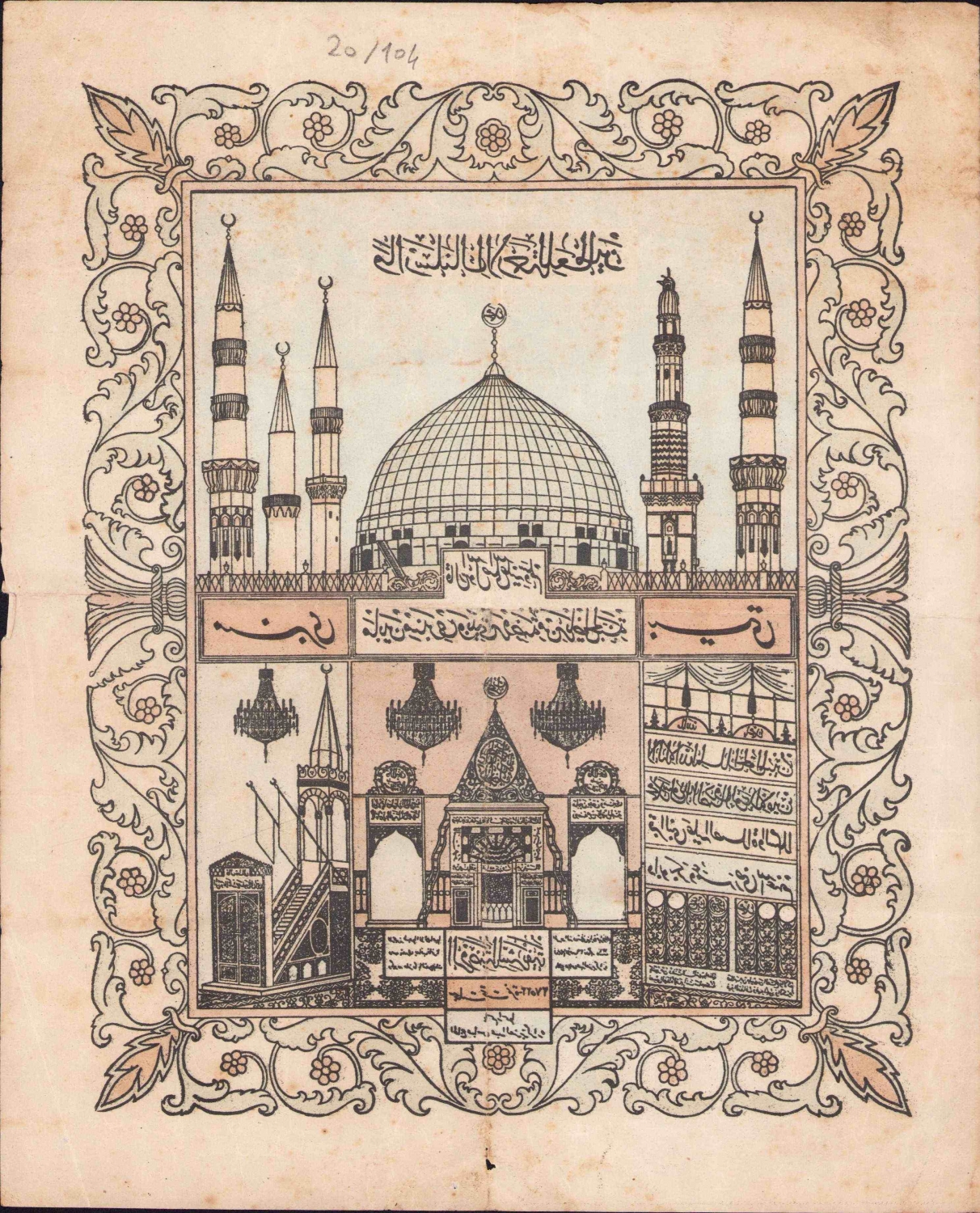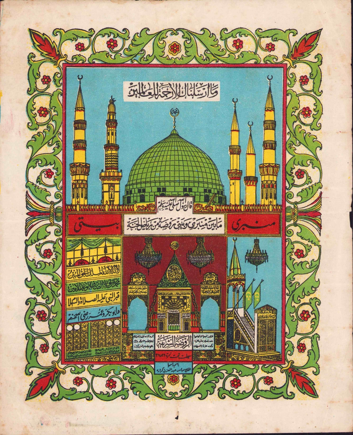 Ravza-i Mutahhara görselli ve Hadis-i Şerif yazılı afiş, 25,5x31 cm.
