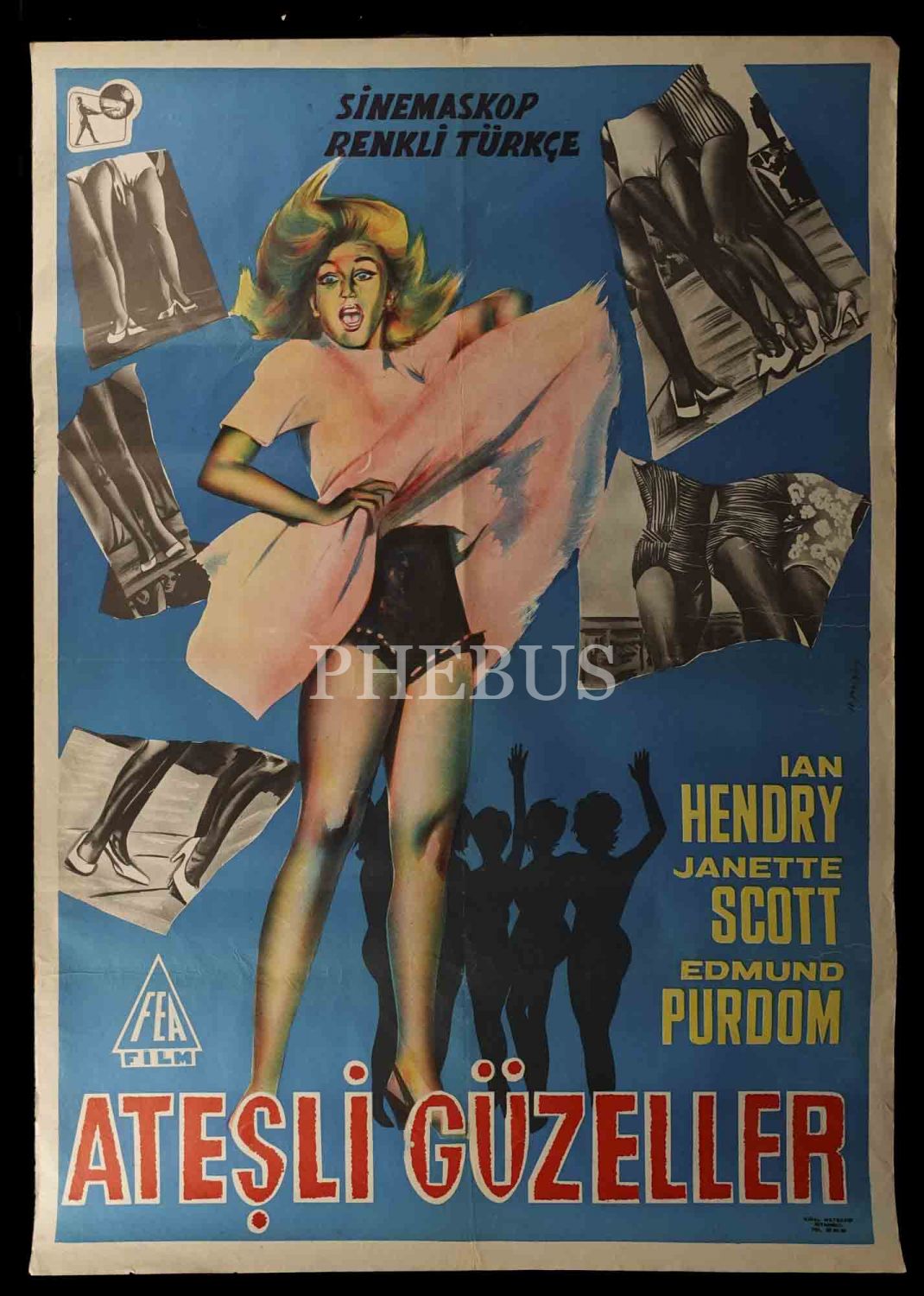 ATEŞLİ GÜZELLER, Ian Hendry, Janette Scott & Edmund Purdom, FEA Film, Kıral Matbaası (İstanbul), 68x99 cm...