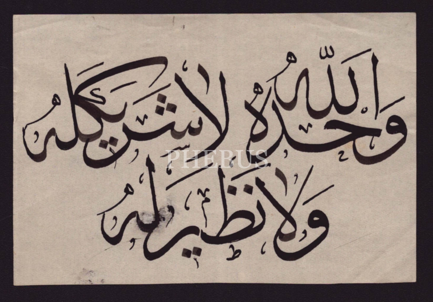 Yazının okunuşu, "Allahu vahdehu lâşerîke lehü ve la nazirâ vahdehû"