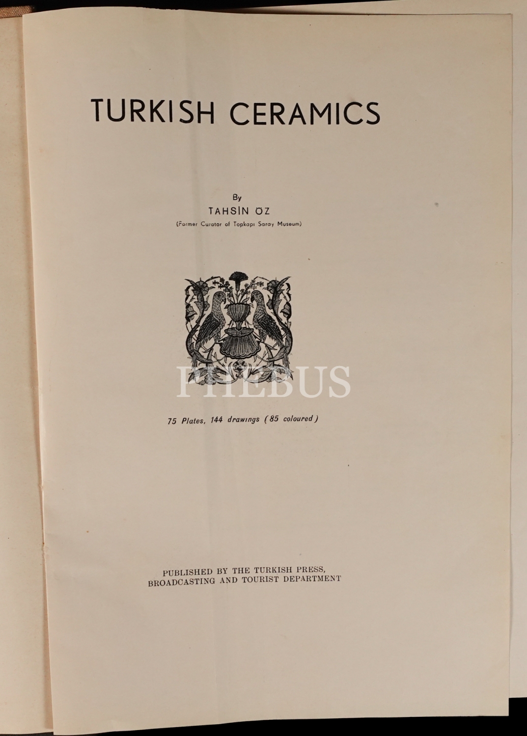 TURKISH CERAMICS, Tahsin Öz, Turkish Press, Broadcasting And Tourist Department, 144 sayfa, 25x34 cm...