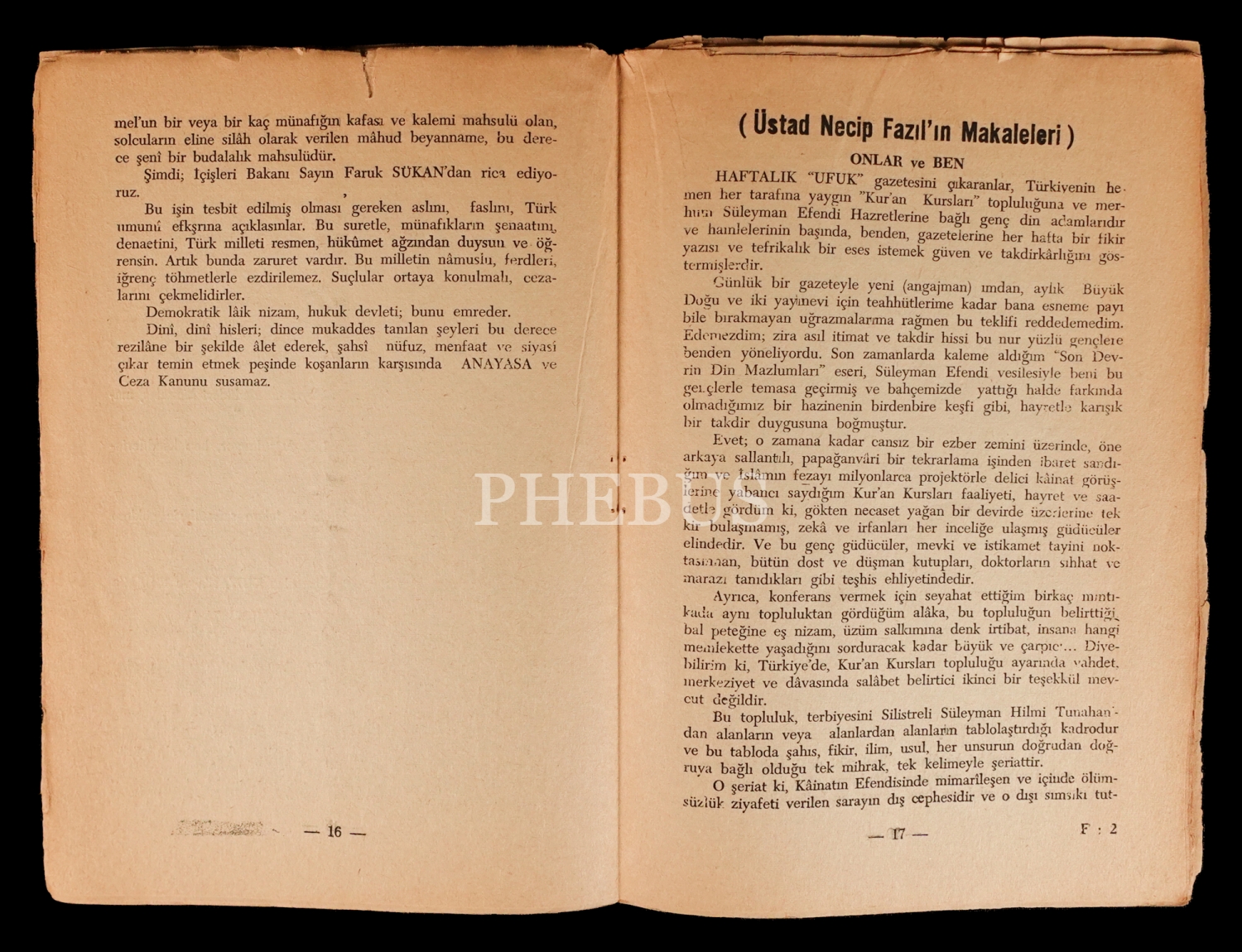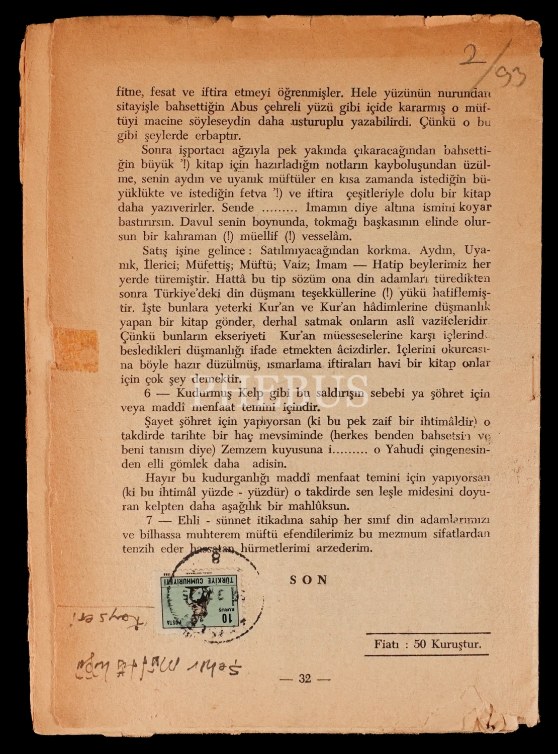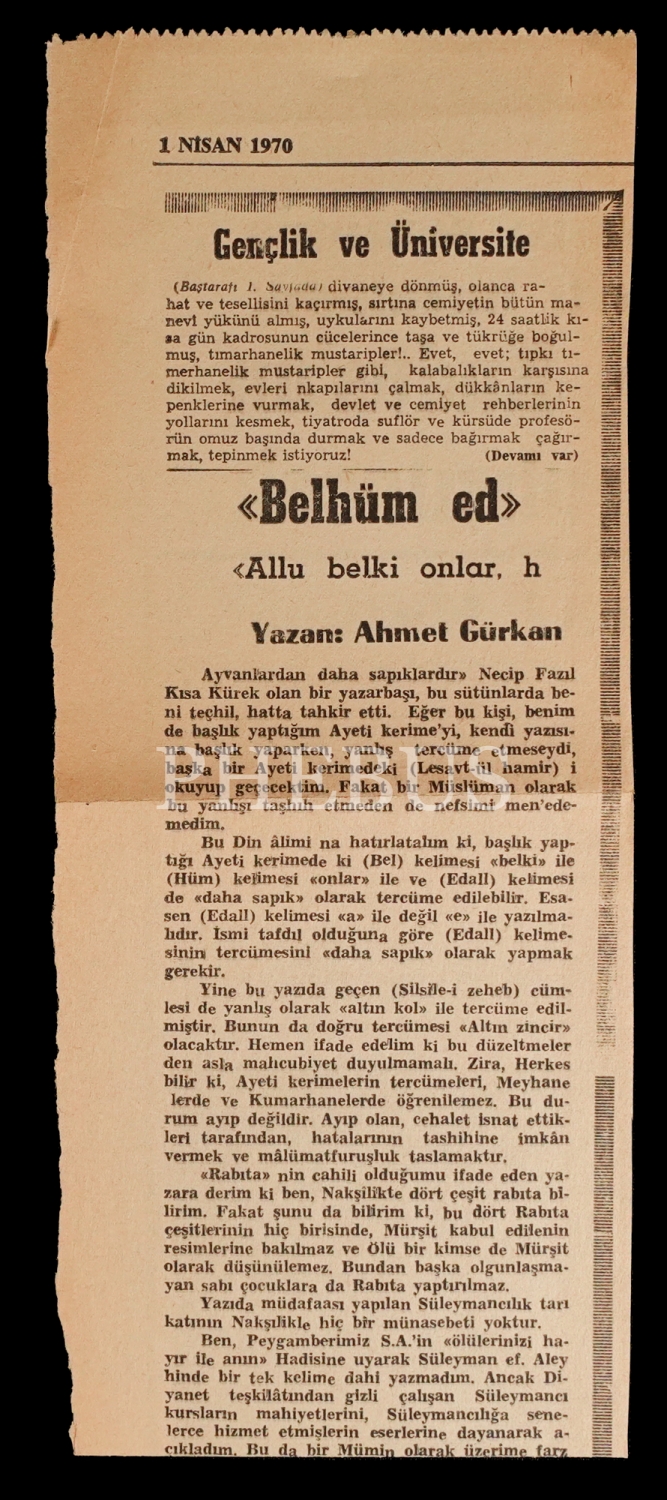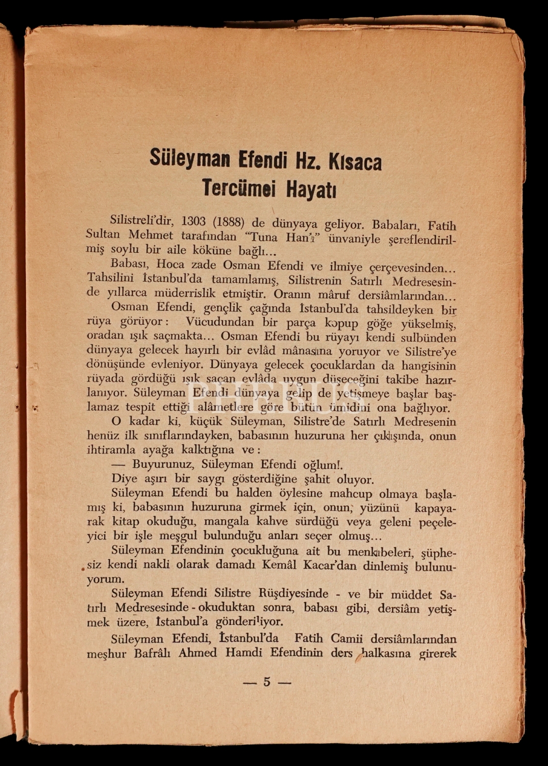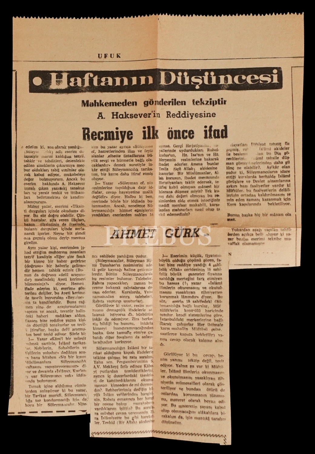 "Son zamanlarda, Dinî mevzuda çok büyük hizmetleri sepkat etmiş olan bir kısım fedakâr Müslüman kimseler hakkında maksatlı bir şekilde SÜLEYMANCILAR diye sol basında aleyhte yapılan neşriyat ve el altından dağıtılan saçma ve uydurma beyannamelerle menfî propağanda yapılmakta ve efkârı umumiye yanıltılmak istenmektedir. Bu propağandayı yürütmek isteyenlerin hangi alçak maksat ve menfur fikirle yaptıklarını değerli hukukçu İstanbul Milletvekili Sayın Abdurrahman Şeref Laç Bey´in Sabah Gazetesinin başmakalesinde kaleme aldığı yazısı ile ve yine muhterem üstad Necip Fazıl Kısakürek´in Ufuk Gazetesinde yayınlanan başmakalesinde kaleme aldığı muhtelif yazılariyle gayet güzel bir şekilde ortaya koymuşlardır. Yanıltılmak istenen Müslüman Türk Milletinin aklı selimine ve sağ duygusuna arzolunur." (Önsözden)