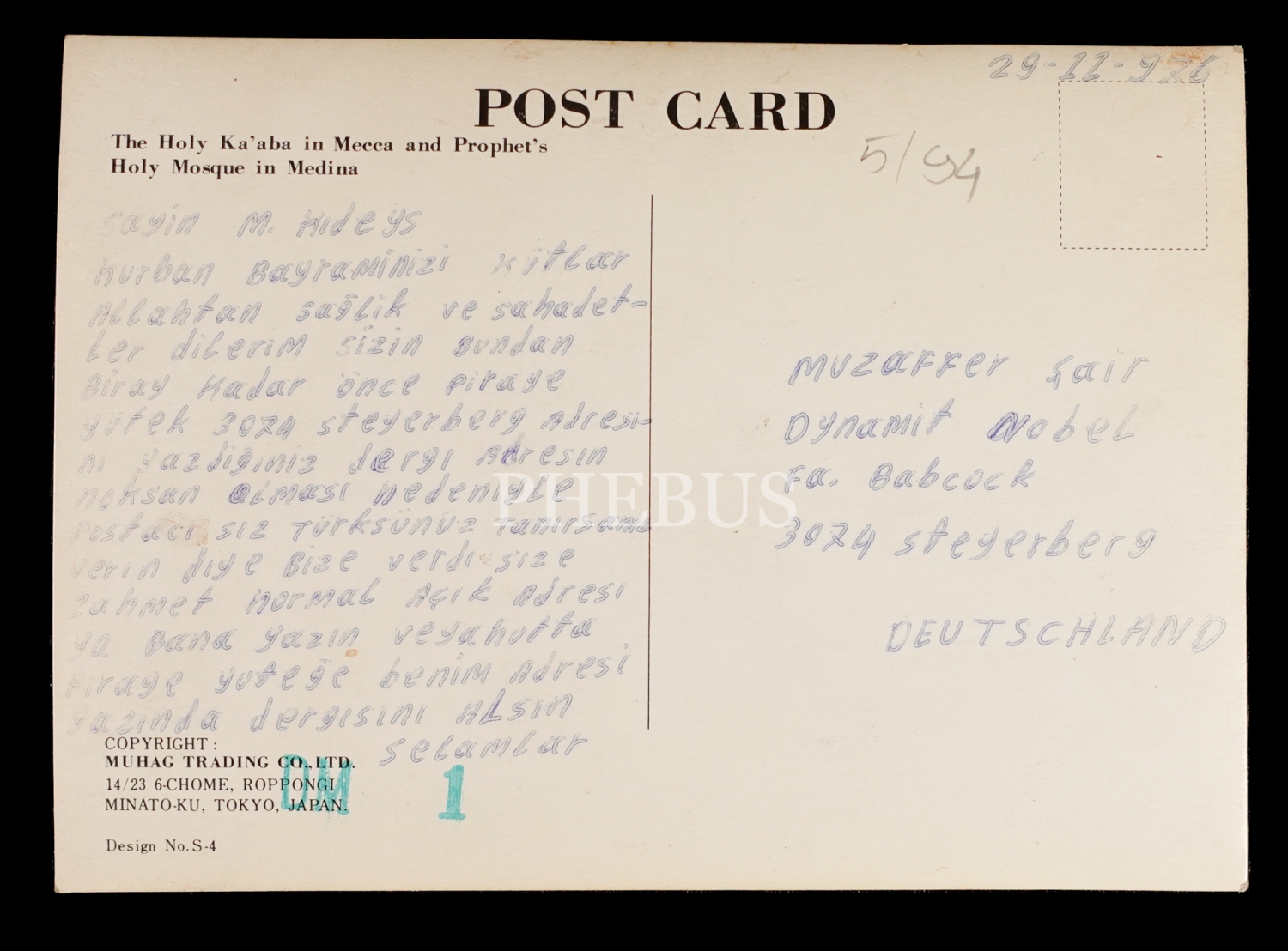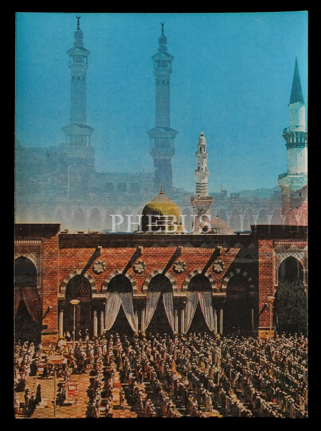 Kartpostal belirli açılara getirildiğinde Kâbe-i Muazzama veya Mescid-i Nebevî görselleri yüzeyde belirmektedir. Arka yüzünde 1976 tarihli bir mektup yer almaktadır.