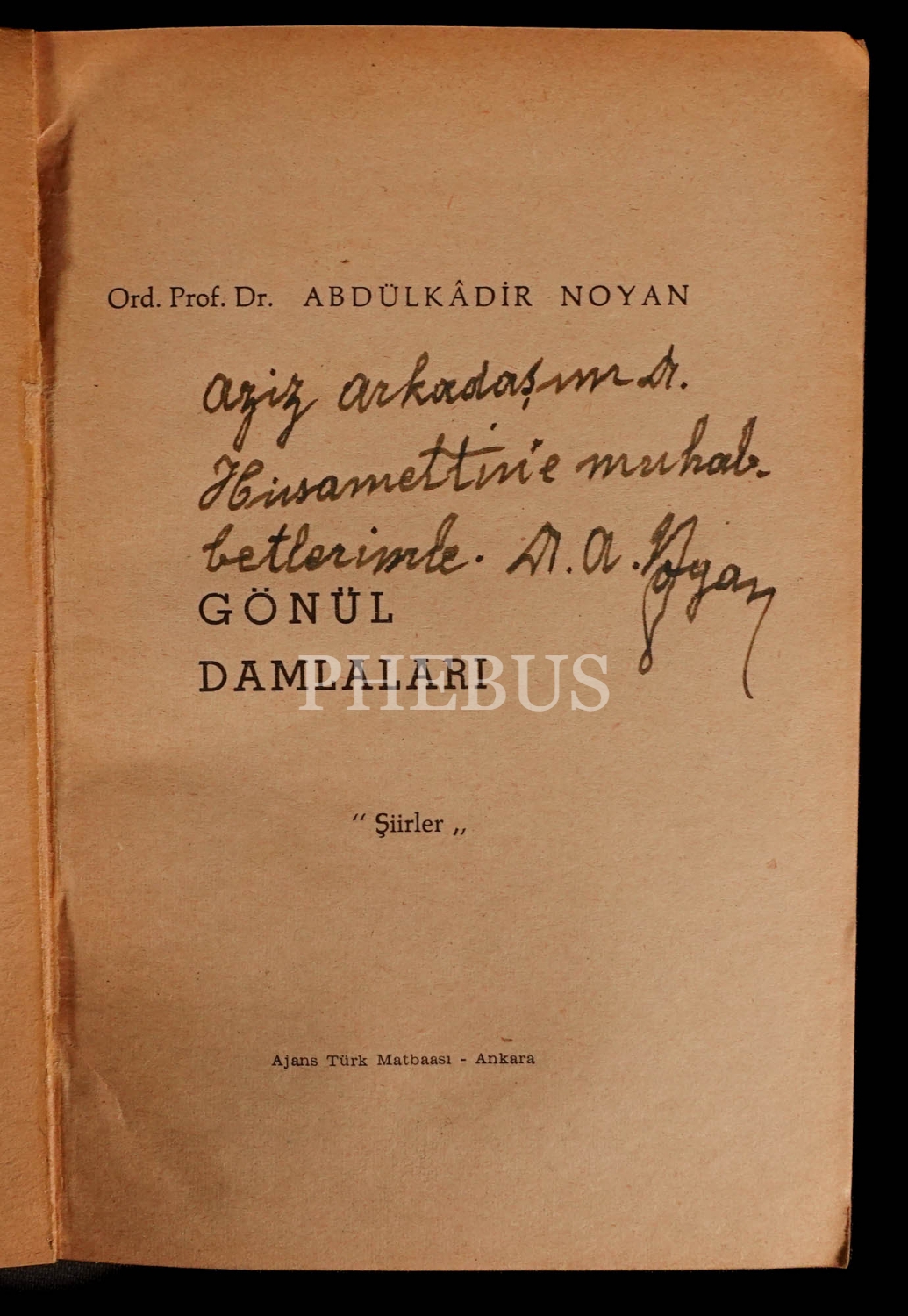GÖNÜL DAMLALARI, Ord. Prof. Dr. Abdülkâdir Noyan, 1952, Ajans Türk Matbaası, 212 sayfa, 14x20 cm...