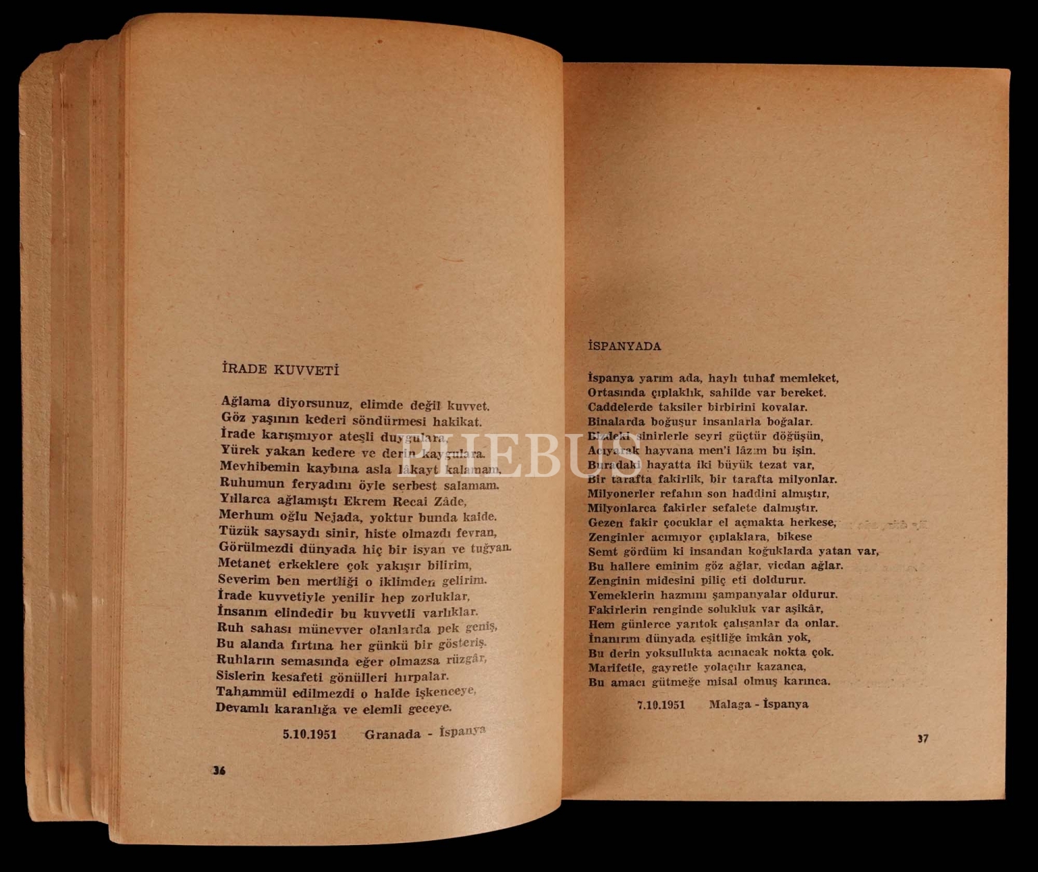 Abdülkâdir Noyan´dan "Aziz arkadaşım Hüsamettin´e muhabbetlerimle..." ithafıyla imzalıdır.