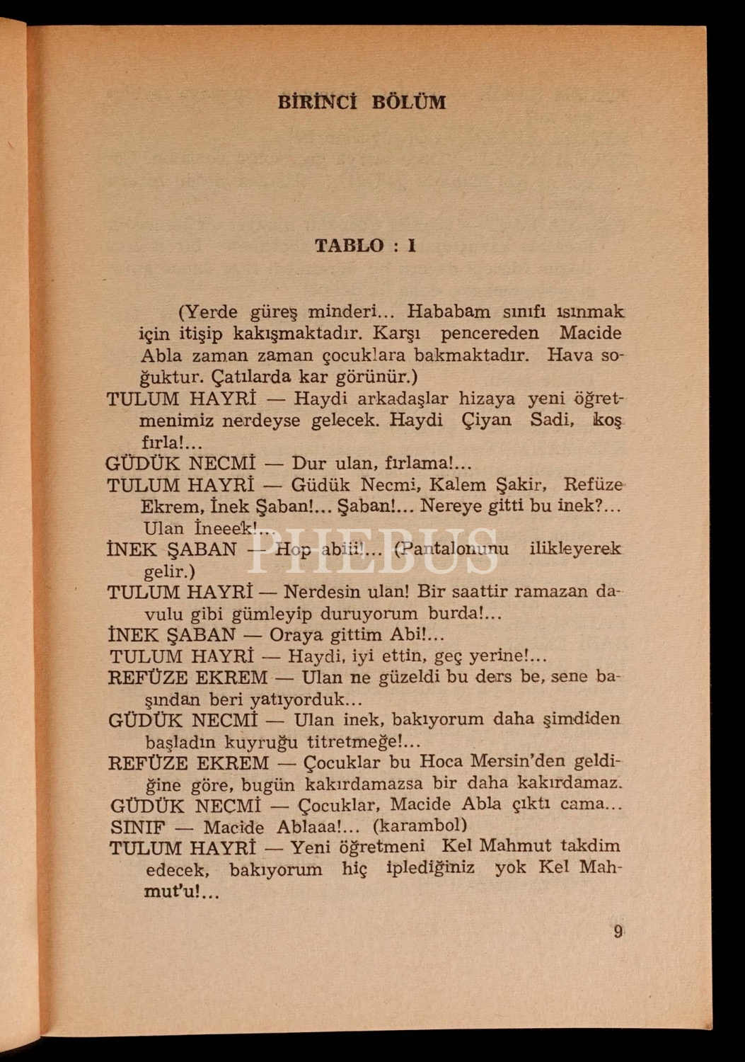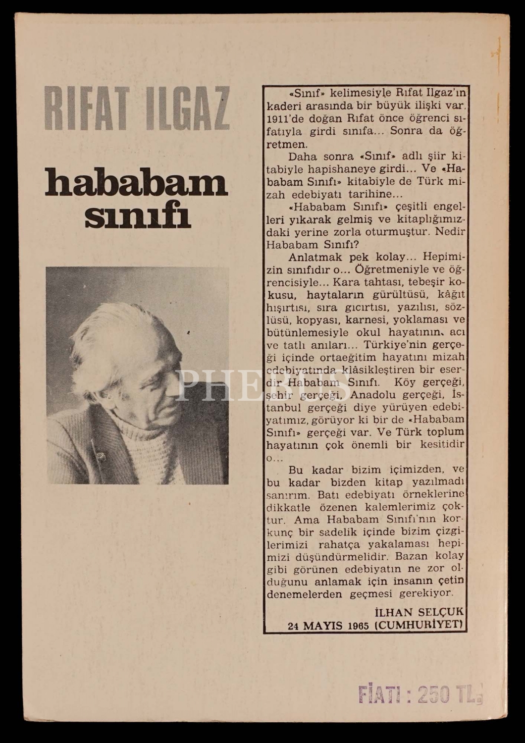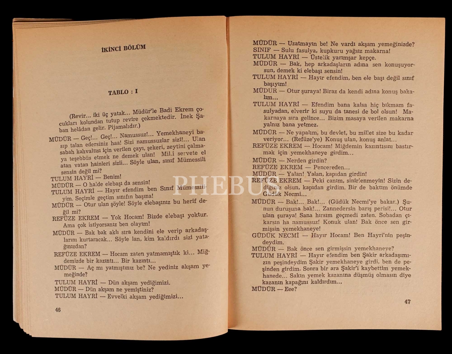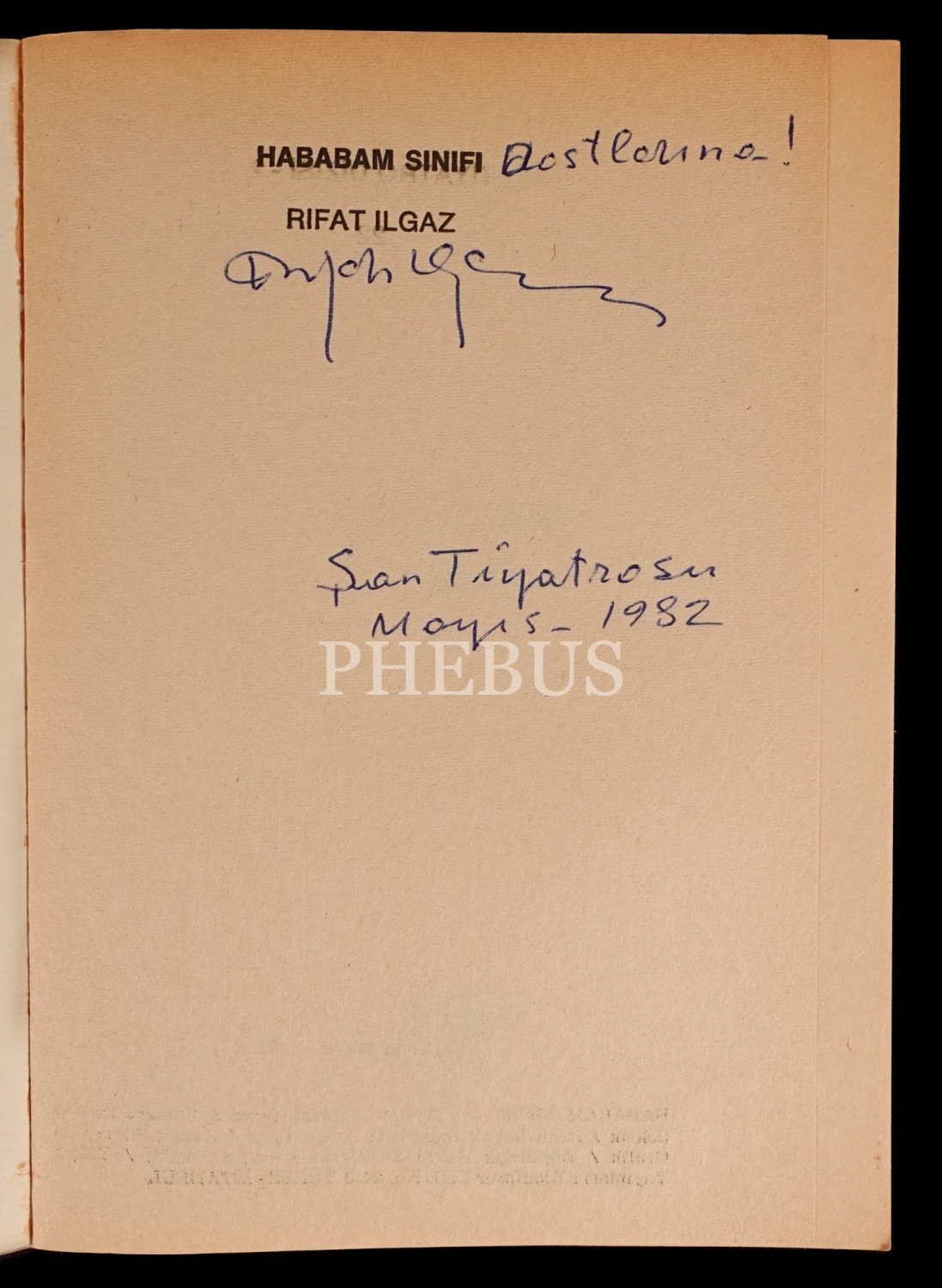 Rıfat Ilgaz´dan "Hababam Sınıfı dostlarına / Şan Tiyatrosu Mayıs 1982..." ithafıyla imzalıdır.