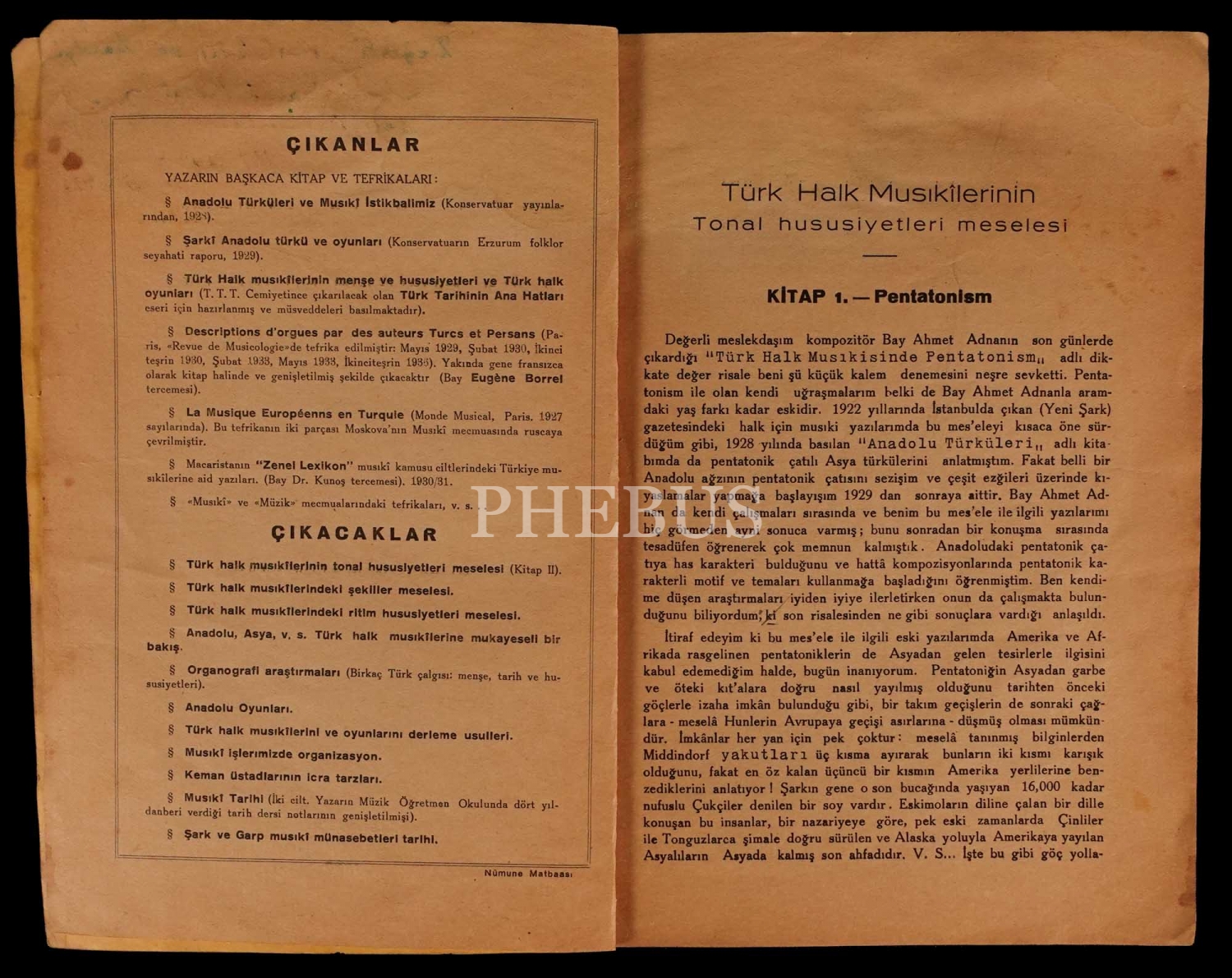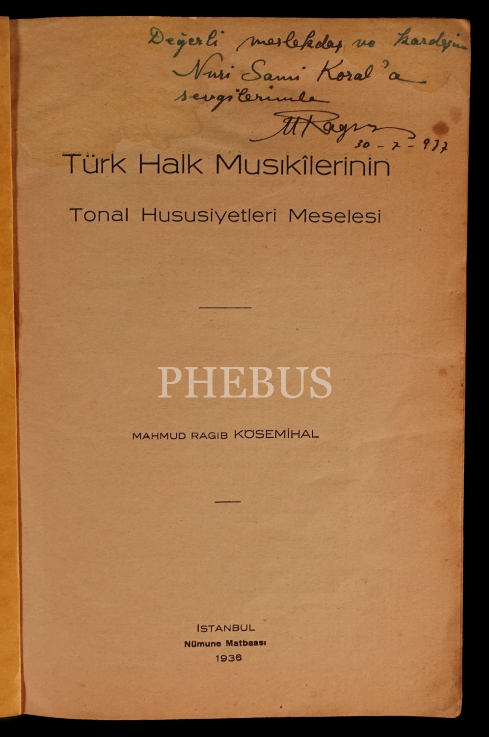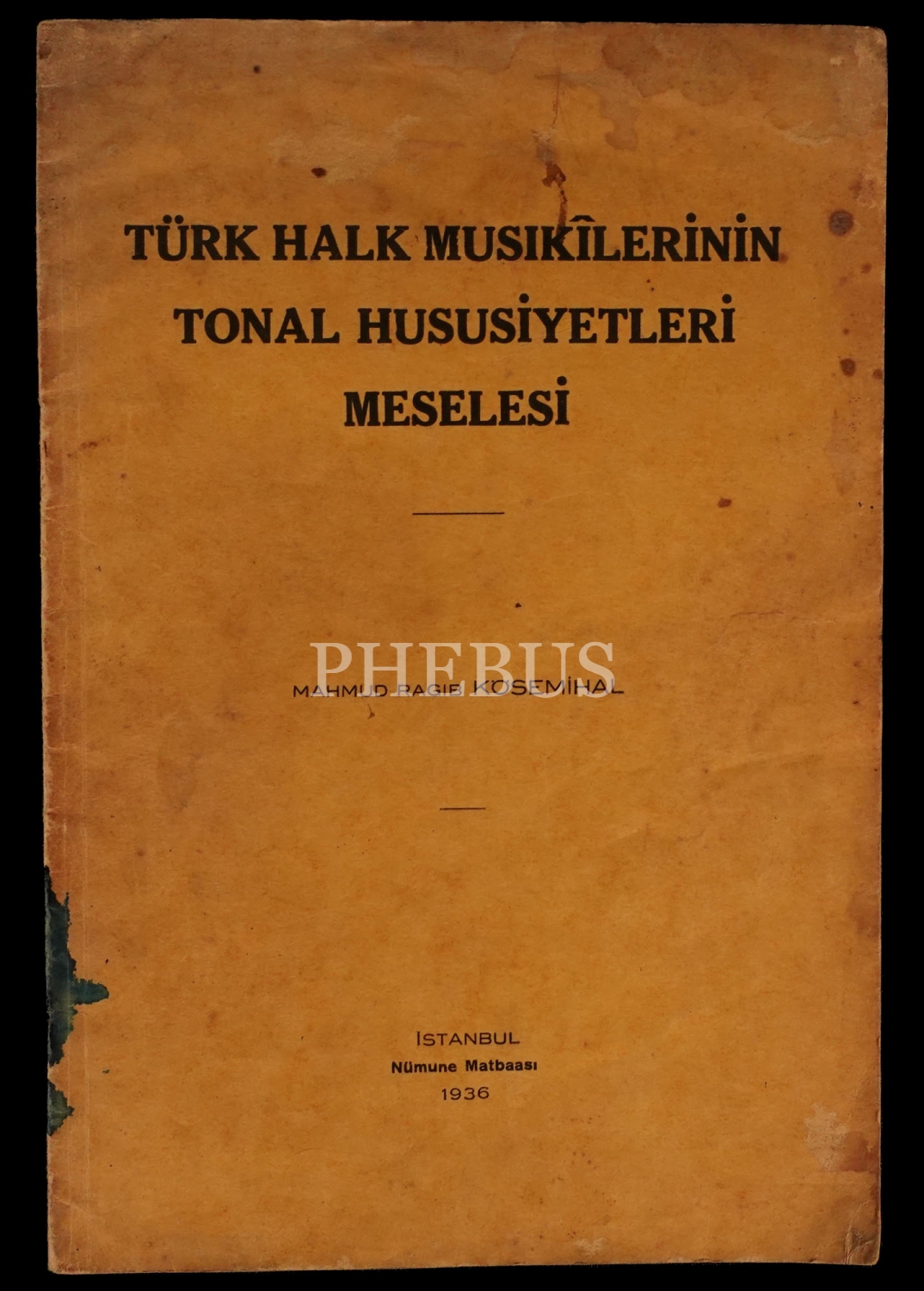 TÜRK HALK MUSIKÎLERİNİN TONAL HUSUSİYETLERİ MESELESİ, Mahmud Ragıb Kösemihal, 1936, Numune Matbaası, 19 sayfa, 16x24 cm...