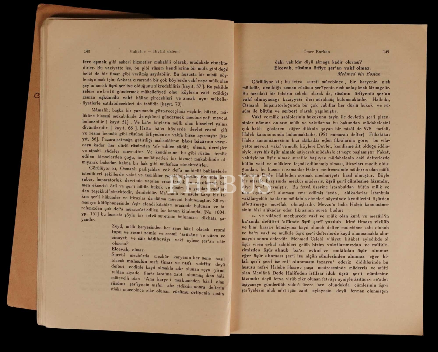 MALİKANE DİVANİ SİSTEMİ- TÜRK-İSLÂM TOPRAK HUKUKU TATBİKATININ OSMANLI İMPARATORLUĞUNDA ALDIĞI ŞEKİLLER, Ömer [Lütfi] Barkan, 120- 194 sayfa aralığı, 17x24 cm...