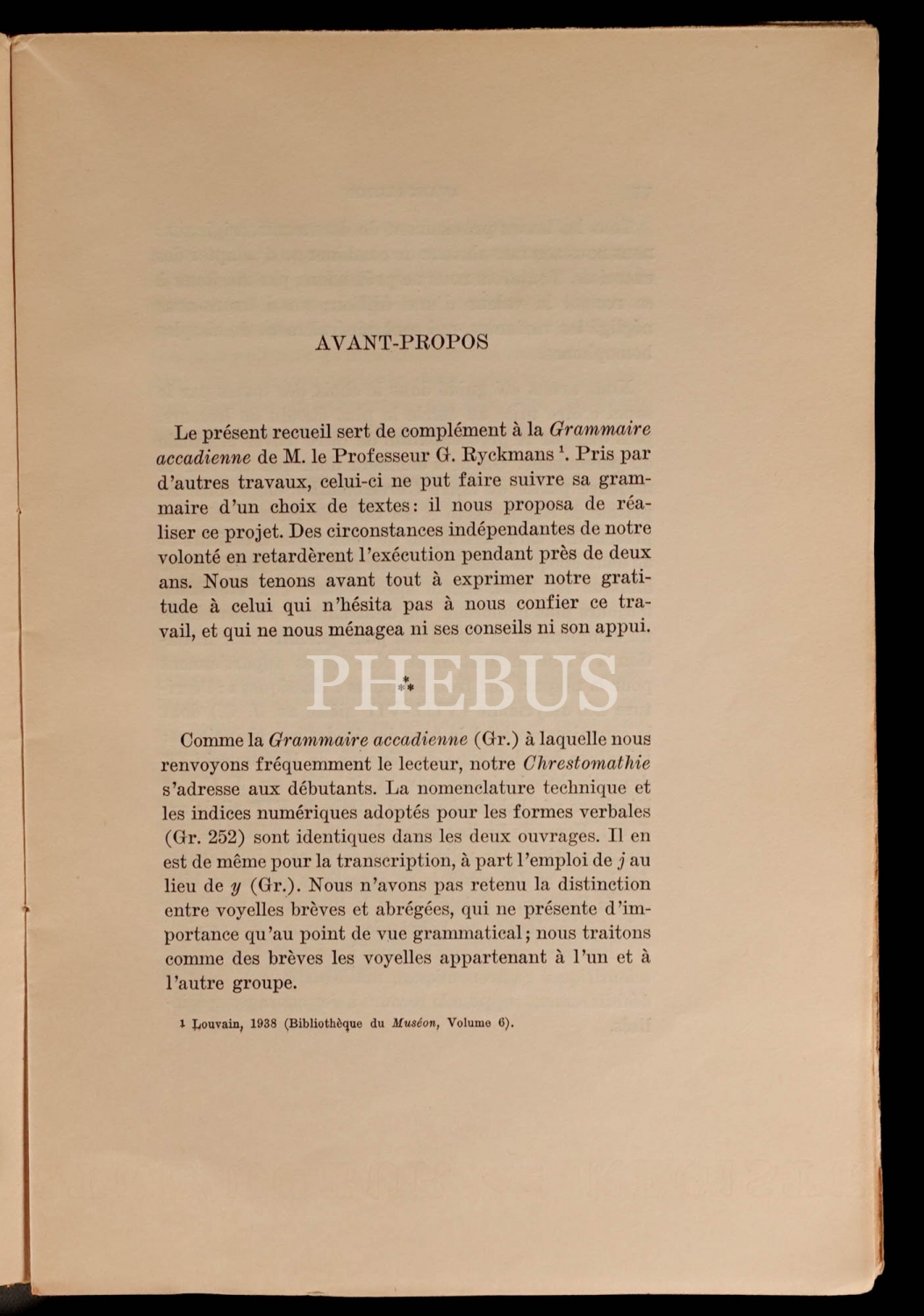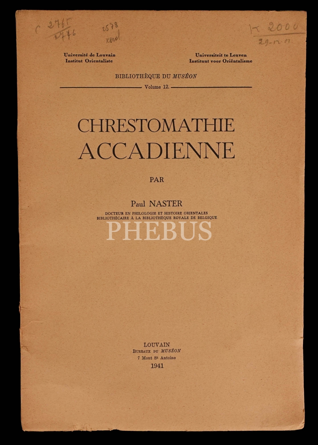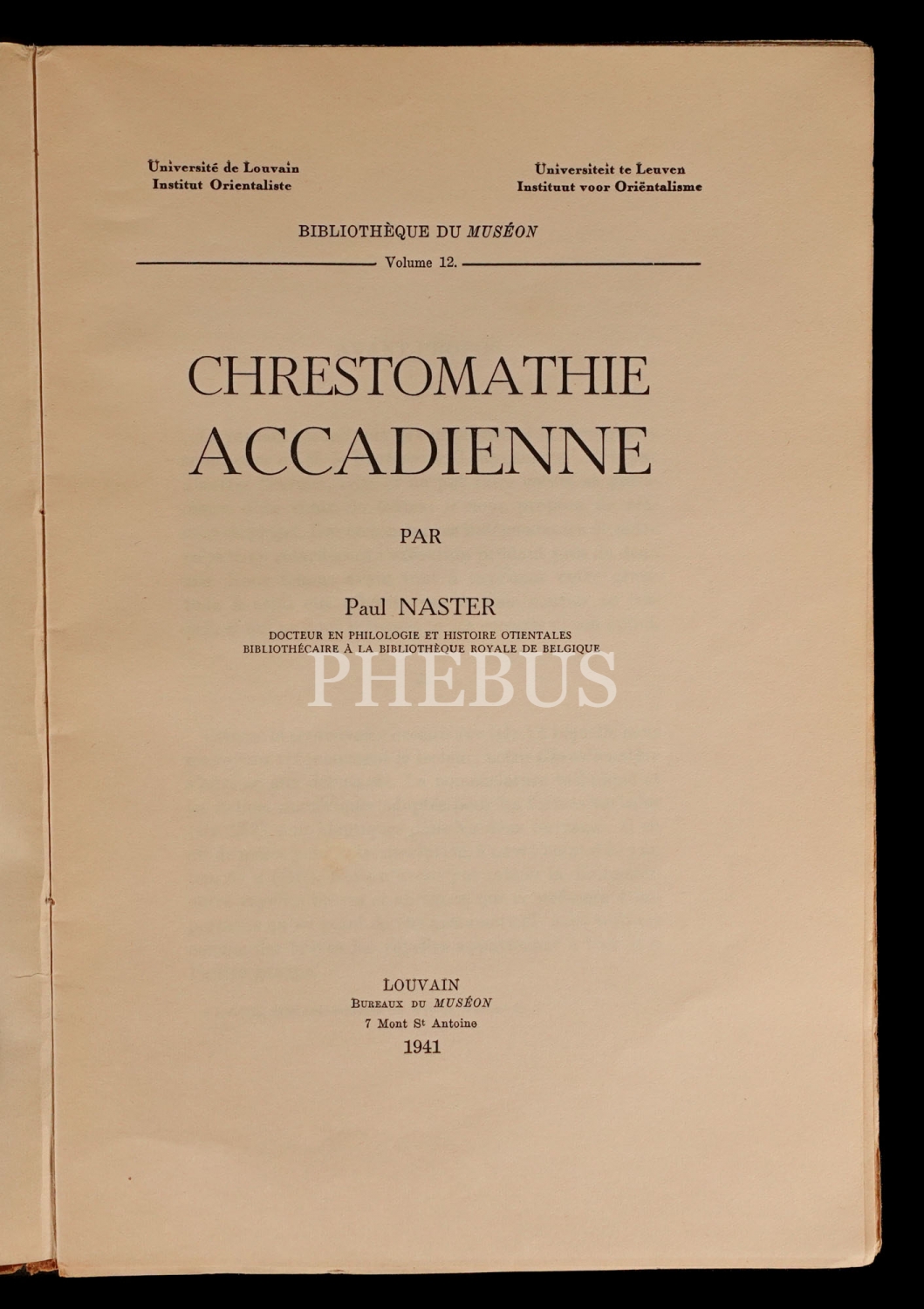 CHRESTOMATHIES ACCADIENNE (Bibliotheque du Museon), Paul Naster, 1941, Louvain Bureaux du Museon France,103 sayfa, 19x28 cm...