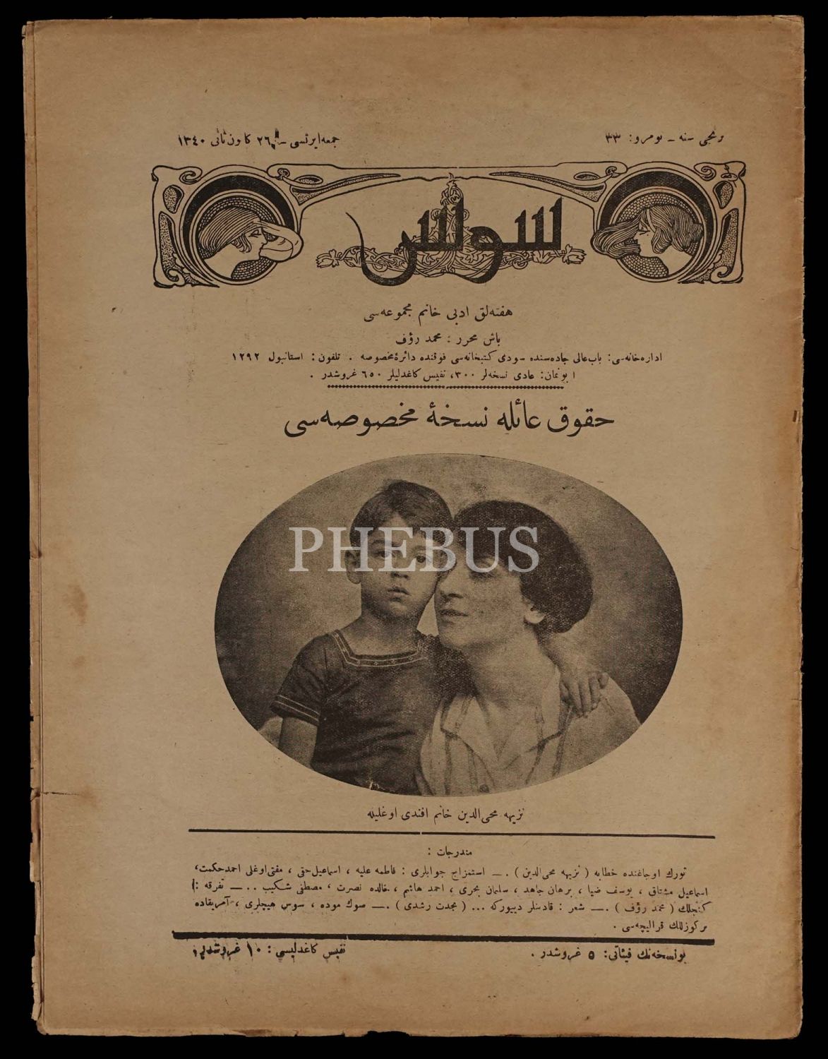 SÜS dergisinin 26 Kanunisani 1340 tarihli aile için "fevkalade nüshası", 24x31 cm...