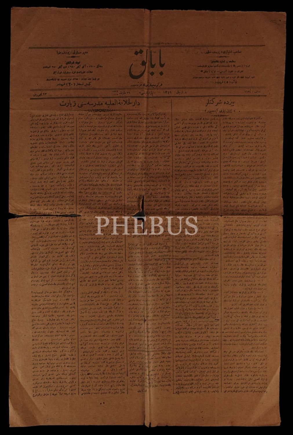 "Bizde şirketler niçin ileri gidemiyor?" başlıklı yazının yer aldığı BABALIK gazetesinin 26 Mart 1923 tarihli nüshası, 37x56 cm...