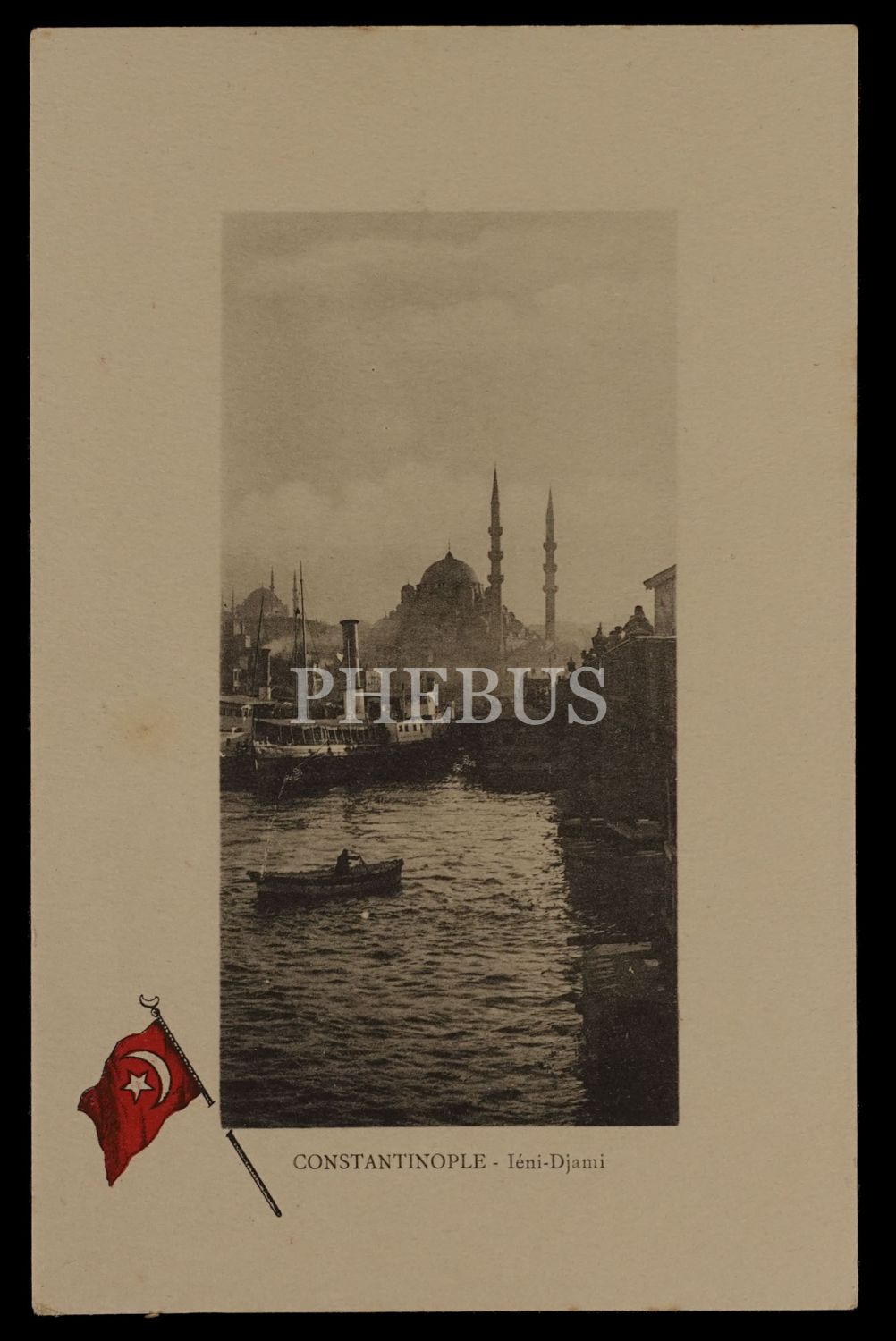 Yeni Camii görselli bayraklı kartpostal, "Constantinople - Ieni-Djami", ed. E.F. Rochat (Constantinople), 9x14 cm...