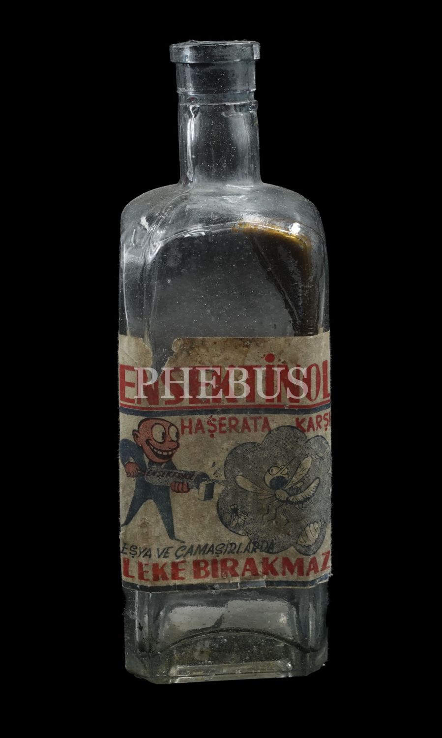 Ensektinol D.D.T. haşere ilacı şişesi (köşeli form), 21 cm...